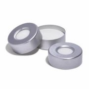 Caps/septa, crimp, headspace, 20 mm, silver aluminum safety cap, molded PTFE/butyl septa, 100/pk