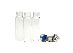 Headspace screw top vial kit, 20 ml, clear, round bottom, silver steel magnetic cap, PTFE/silicone septa, 100/pk