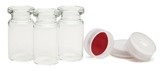 Snap top solvent vial kit, 5 mL, clear vials, clear caps, PTFE/silicone septa, 100/pk