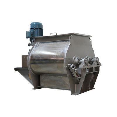 工作原理: 双轴无重力混合机,筒体内装有双轴旋转方向相反的浆叶,浆叶呈重叠状并形成一定角度,浆叶旋转将物料抛向空间流动层,产生瞬间失重,相互落入对方区域内,物料来回渗混,中央部位形成一个流态化的失重区和旋转涡流,物料并沿轴向径向运动,从而形成全方位复合循环,迅速达到均匀混合。结构特点: 双轴无重力混合机混合物料十分广泛,在粉体与粉体流动性能差异较大,以及比重、颗粒差异 较大的物料不产生分层离析现象。粉体与粉体在 1:1000 配比时,其标准偏差为十万分之三 - 八,含量波动误差 <2% (变异因子) 混合速度快,一般粉体与粉体的混合只需 2-3 分钟。 需固与液混合时,筒盖按装加液或喷雾装置。 本机间歇操作,出料阀采用长型双开门放料,出料阀设有手动、气动型式。 双轴无重力混合机技术参数| 型号名称 | WZ-0.1 | WZ-0.25 | WZ-0.5 | WZ-1 | WZ-2 | WZ-4 | WZ-6 | | 全容积(m3) | 0.1 | 0.25 | 0.5 | 1 | 2 | 4 | 6 | | 功率(kw) | 3 | 4 | 5.5 | 11 | 18.5 | 22~30 | 30~37 | | 外形尺寸(m) | 1.2×1.2×0.9 | 1.3×1.3×1 | 1.6×1.4×1.2 | 1.8×2.0×1.5 | 2.4×2.5×1.9 | 3.0×2.9×2.0 | 3.1×3.4×2.2 |