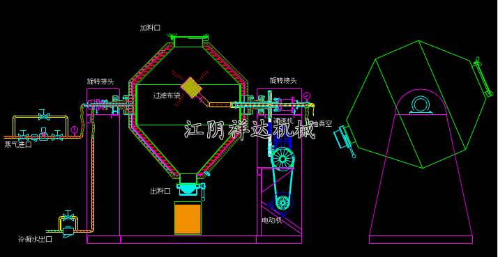 概述 双锥回转真空干燥机是集合-干燥于一体的新型干燥机。将泠凝器、真空泵与干燥机配套;组成真空干燥装置。(如不需回收溶剂;泠疑器可不用)本机设计先进;内部结构简单;清洗容易物料能全部排出;操作简便;能降低劳动强度改善工作环境。同时因容器本身回转时物料亦转动但器壁上不积料;故传热系数较高;干燥速率大、不仅节约能源;而且物料干燥均匀充分;质量好。可广泛应用于制药、化工、食品、燃料等行业物料的干燥。符合GMP要求。 特点 油加热时;采用自动恒温控制;可以干燥生化制品和矿物原来;温度可在20~160℃之间;温度±2℃以内。 热效率高;比一般烘箱提高2倍以上。 间接加热;物料不会被污染;符合GMP要求。设备维修操作简单、易清洗。 应用 本机适用于医药、食品、化工等行业的粉、粒状物料的真空干燥和混合尤其适用于有下列的物料 不能承受高温的热敏性物料;容易氧化;有危险的物料;需回收溶剂和有毒气体的物料;要求残留挥发物含量极低的物料;要求混合充分;均匀的物料。 原理 SZG双锥回转真空干燥机为双锥形的回转罐体;罐内在真空状态下;向夹套内通人蒸汽或热水进行加热;热量通过罐体内壁与湿物料接触。湿物料吸热后蒸发的水气;通过真空泵经真空排气管被抽走。由于罐体内处于真空状态;且罐体的回转使物料不断的上下、内外翻动;故加快了物料的干燥速度;提高干燥效率;达到均匀干燥的目的。