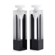 分子光谱->UV-Vis 与 UV-Vis-NIR 光谱->用于 UV-Vis 和 UV-Vis-NIR 系统的半微量比色池 矩形半微量流通池,石英,开口式,随附 PTFE 顶盖,4 mm 孔 x 10 mm 光程,底座厚度 9 mm,不透光黑色池壁,1 mL,1/包. 适用于所有安捷伦紫外可见分光光度计