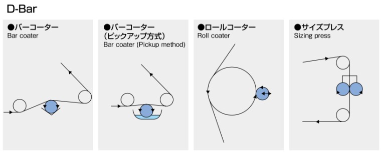 D-Bar关于凹槽规格选择 尽管取决于涂布条件,但是涂布液的转移量通常与(D-Bar>线棒)有关。 因此,在相同的1mm面积的情况下,可以认为D-Bar的应用更多。 它只是一个指南,但是当通过将D-Bar与线棒进行比较来选择D-Bar时,请参考以下凹槽规格列表的摘录,我们建议您使用最小的规格作为指导,例如A。