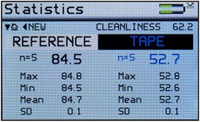 Novo-Shade Duo +将3种测量仪器合为一体:反射率,遮盖力和清洁度计 测量表面的反射率 测量涂料对基体的遮盖情况 测量表面清洁度