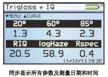 雾影是涂装和抛光产品的一种常见现象,它会使物体表面形成乳状外观,从而降低成像清晰度。Rhopoint IQ能迅速检测出产品表面是否存在雾影现象。 Rhopoint IQ可以测量20/60/85°光泽(GLOSS),峰值反射率(RSPEC),反射雾影(HAZE),成像质量(RIQ),鲜映性(DOI),反射曲线分布状况 光泽(GLOSS)—测量反射光数量的百分比。 -几何分析:为得到更准确的数据,不同表面应选择相对应的光路亚光:85°,中光泽:60°,高光泽:20° 峰值反射率(RSPEC) —是表征在距离反射角很小的角度范围内光强的一个指标。 -用途:峰值反射率对于纹理的细微变化非常敏感,用于辨别光滑表面纹理的细微差别。 反射雾影(HAZE) —由于涂料中颜料分散不好而导致的微观结构会发生乳状外观,这种光学效应称为雾影。 -现象:雾影是中高光泽表面拥有的现象。微小纹理的中高光泽表面在接近主反射光的方向产生低强度的散射光,但入射光的大部分都在镜像反射,使得表面看起来有高的光泽和成像质量,但是图像有乳状的雾影。雾影读数越低,表面质量越好。 -成因:分散性差,原料的不兼容性,无添加剂,助剂的质量,烘干/干燥/固化时的环境状况,抛光痕迹,细微的划痕,老化,氧化,清洁度不够和表面的残留物。 反射雾影补偿 —仪器从高度反光的涂层,金属漆以及特殊涂料中获得反射补偿,从而测量出这些涂层表面的雾影。 成像质量(RIQ)—RIQ被用于衡量如橘皮和表面纹理的一个指标,相比于DOI,RIQ有更高的分辨率和更接近人眼观察的特性,尤其在高质量表面,如汽车表面等。 低成像质量的现象:橘皮,刷痕,波纹或其他表面纹理,导致被反射的图像扭曲。 成像质量(RIQ)—RIQ被用于衡量如橘皮和表面纹理的一个指标,相比于DOI,RIQ有更高的分辨率和更接近人眼观察的特性,尤其在高质量表面,如汽车表面等。 低成像质量的现象:橘皮,刷痕,波纹或其他表面纹理,导致被反射的图像扭曲。 -成因:工艺的问题,涂料无规则流平,涂料粘度太高或太低,固化前涂料的凹陷或流动,不符规格的颜料尺寸或分布,过度喷涂,光照和喷涂时间不正确,涂料间的兼容性,不正确的烘烤时间或温度。 鲜映性(DOI)—测量产品在被测表面反射成像的清晰度。 产品特点 测量 迅速测量和统计出所有参数并生成趋势分析图。