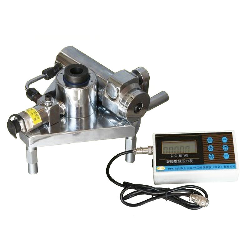 锚具组成 如图1所示,转动摇把,推动泵体内活塞移动,液压油经油管压入四通接头,一路与压力传感器相通,另一路进入千斤顶推动活塞上升,带动螺母及拉杆标准块施加拉力。随着手柄的转动,对标准块的拉力逐渐增大,当饰面砖剥离时,油压迅速降低回零。由于传感器所受的压力与千斤顶内的压力相等,所以可通过传感器与数显电路组成测力装置,将对应压力值显示出来。在饰面砖剥离瞬间,电路将最大油压记录下来。 技术参数