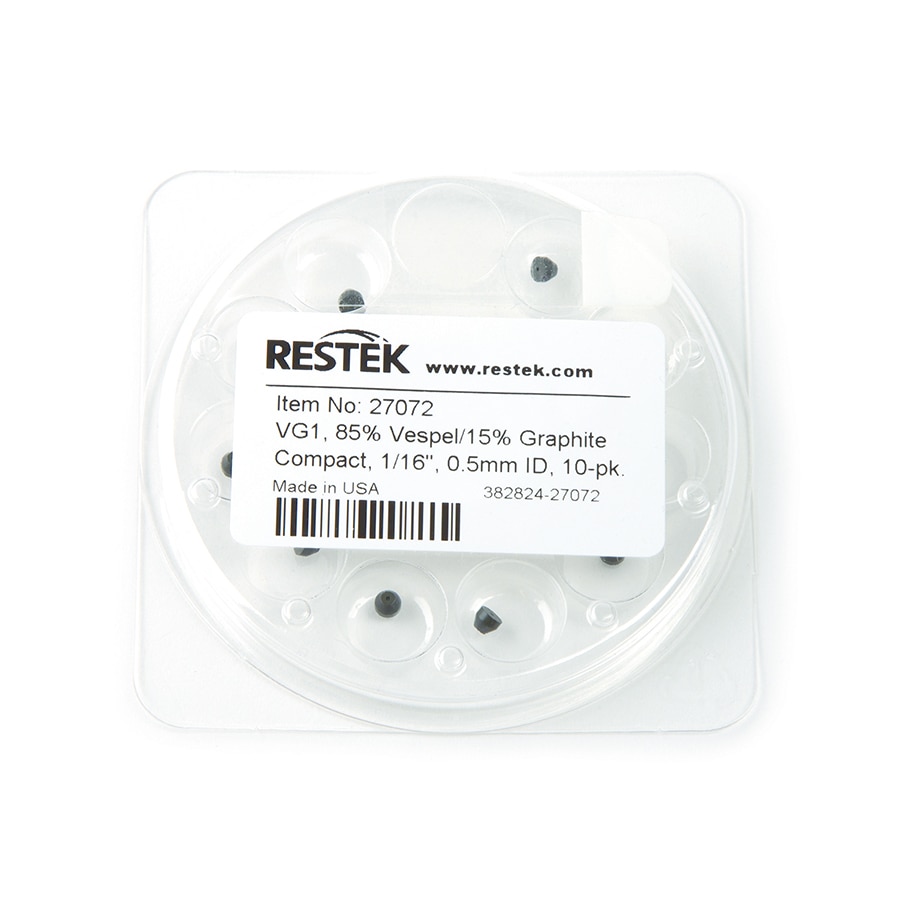 卡套,Vespel/石墨,短型,VG1,85%Vespel/15%石墨,1/16英寸x 0.5 mm ID,用于安捷伦GC,10个/包