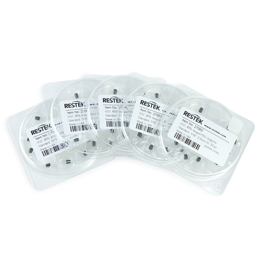 毛细柱卡套,Vespel/石墨,标准型,用于1/16英寸压缩型接头,VG1,85%Vespel/15%石墨,1/16英寸x 0.5 mm ID,50个/包