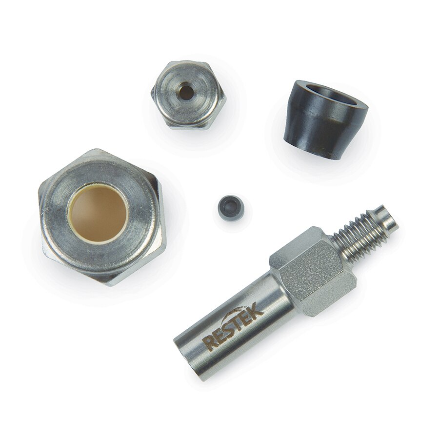 FID adaptor, large bore; 1/4" ferrule, Vespel/graphite; 1/4" nut, stainless steel; 1/16" nut, stainless steel; 1/16" ferrule, Vespel/graphite |