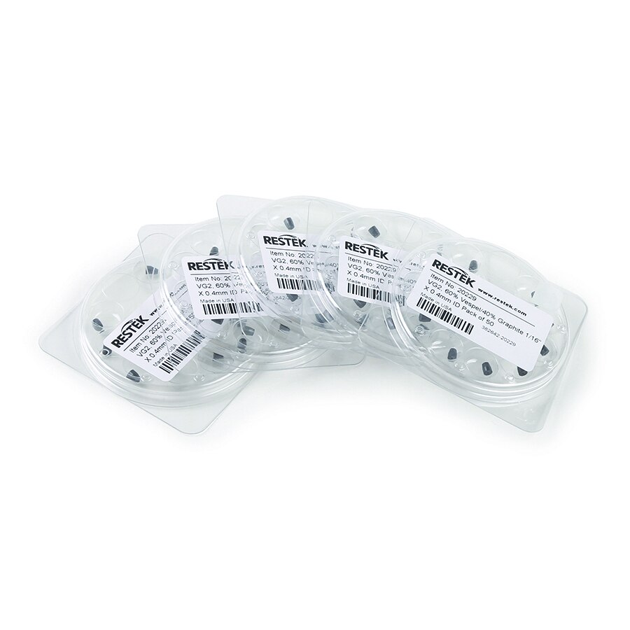 毛细柱卡套,Vespel/石墨,用于1/16英寸压缩型接头,VG2,60%Vespel/40%石墨,1/16英寸x 0.4 mm ID,50个/包