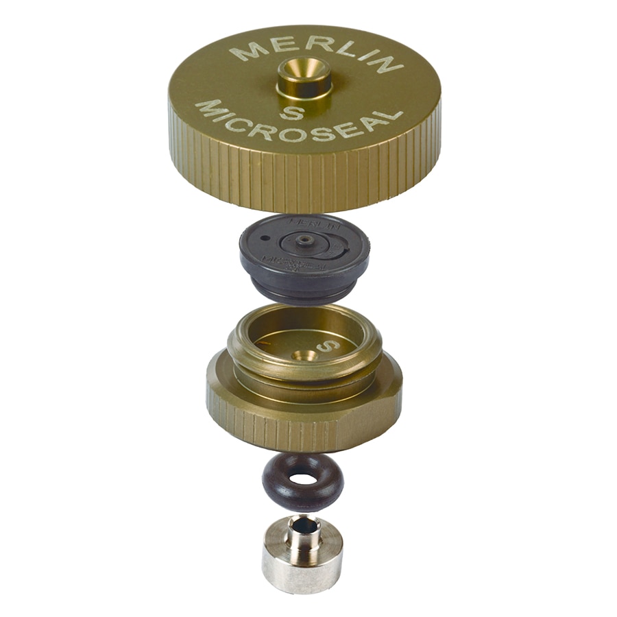 The advantages of the Merlin Microseal septum include elimination of septum coring, longer life, and consistently low needle-insertion force. The Microseal septum incorporates two separate sealing mechanisms. These sliding seals eliminate septum coring and the resulting accumulation of septum crumbs in the injection port liner. The Microseal septum uses a 23-gauge (0.63 mm, 0.025") needle or probe with a blunt, truncated conical tip. Because the syringe plunger end details are determined by manual or autosampler compatibility, often a removable needle syringe is an effective way to match both of these requirements. Installation is simple, requiring no modification of the injection port. Replacement Microseals for general-purpose (3 to 100 psi), low-pressure (1 to 45 psi), and SPME fiber (3 to 100 psi) applications are available. For use in SPME Arrow applications, a different nut/adaptor kit must be used; see Related Products. 特点与优势