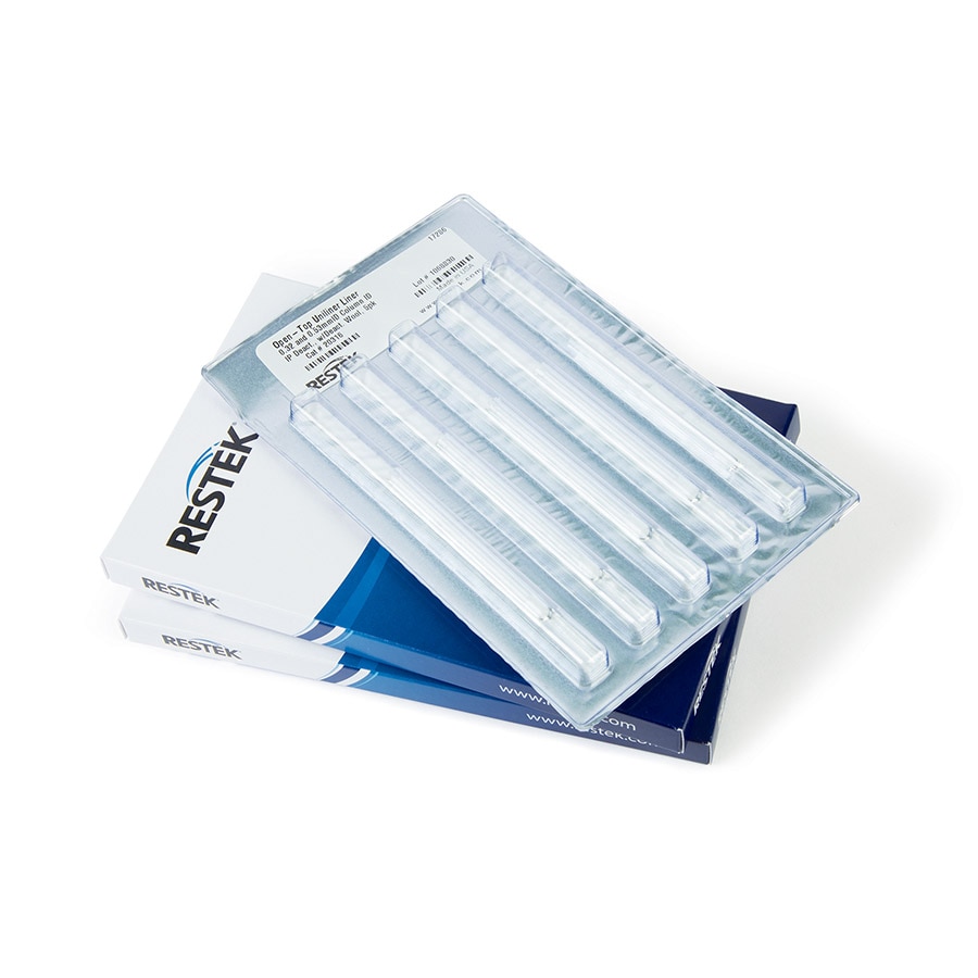 顶部开口Uniliner衬管,0.32和0.53 mm ID,仅用于直接进样,用于1/4英寸填充柱进样口转换,标准去活,带去活玻璃毛,5根装