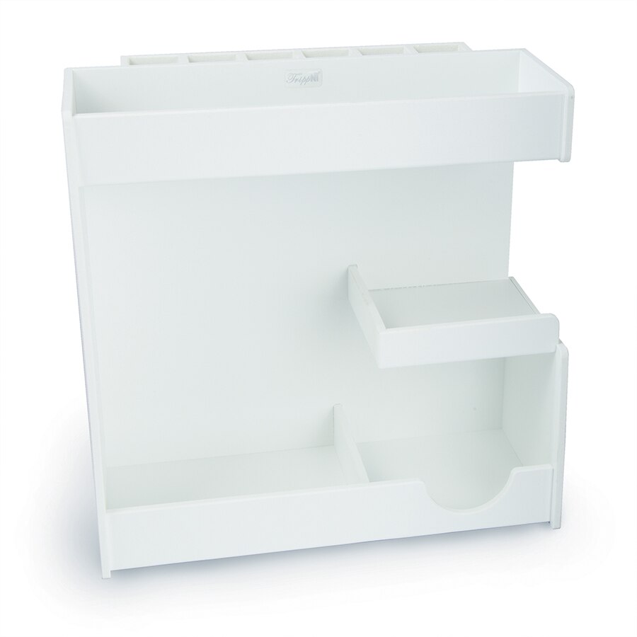 Small footprint, high storage capacity, easy access, built-in wiper dispenser.