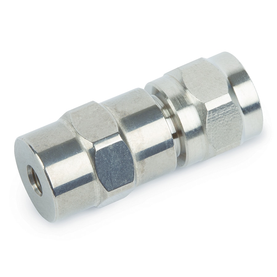 特点与优势 Trident直列式保护柱架可以通过连接一小段1/16"管路、适当的螺母和压环,或手拧接头,几乎可与任何HPLC柱一起使用。此部件可与Restek柱一起使用,也可与其他制造商的柱一起使用。此保护柱架适用于10 mm保护柱芯。可选择购买带有或不带有预过滤器的保护柱架,预过滤器能提供额外的保护,防止颗粒物缩短保护柱的使用寿命。产品规格