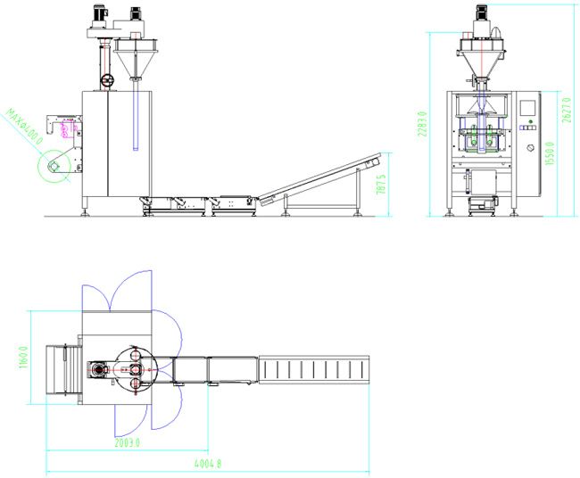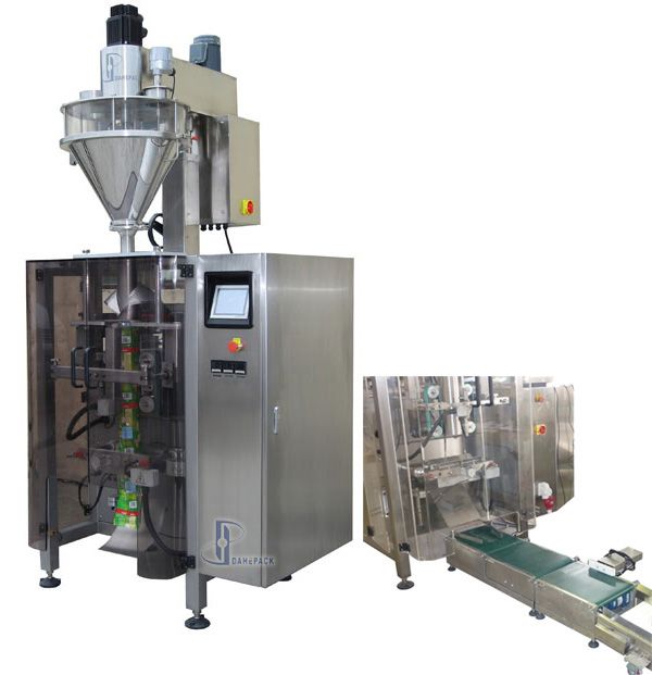 简要说明 本机与计量配置可自动完成计量、送料、充填制袋、日期打印、充气(排气)、成品输送的全部包装过程,并自动完成计数。适用于包装奶粉、蛋白粉、固体饮料、白砂糖、葡萄糖、咖啡粉等 主要特征 该包装机采用皮带牵引拉膜。 牵引结构采用伺服电机,定位精度高,易于调整。 横封采用大功率伺服电机,横封压力和张开行程可随时调节,适合各种包装材料。 采用PLC伺服系统、气动控制系统、超大显示触摸屏构成驱动控制核心;最大限度提高了整机的控制精度、可靠性和智能化程度 触摸屏能储存多种不同产品的包装工艺参数,当更换产品时可随时使用无需重新设定。 机架、电控箱、与物料接触部分不锈钢,部分传动零件电镀。 可以不停机直接在触摸屏上调整封切位置,纠偏等。 带有自动报警,如门未关、无卷膜、无色带等。 该机适合做枕式包、立袋、连包袋、手拎袋。 梅特勒-托利多重量传感器,有超差剔除和称重反馈称重系统 高反应速度的称重A/D模块 含三段输送带,第×段接袋输送带,第二段称重输送带,第三段超差剔除输送带(含气动剔除系统) 称重反馈系统,对当前包进行称重,超差多了或者少了会对下一包进行相应的充填脉冲数自动减少或增加,以保持整个包装过程重量的稳定 超差剔除系统,对重量超差的包进行剔除,以保证流水线每个产品都合格 主要参数