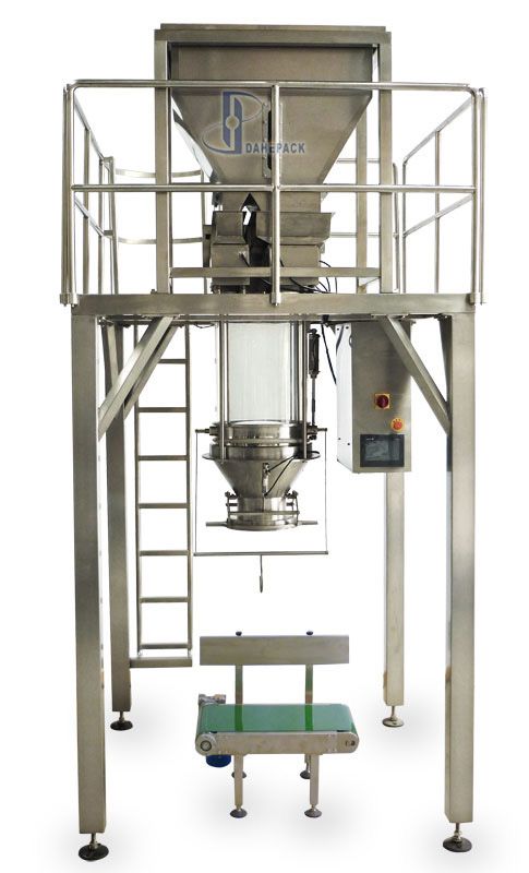 简要说明 该系列自动定量包装秤主要构成部件有:进料机构、称重机构、气动执行机构、夹袋机构、除尘机构、电控部分等组成的一体化自动包装系统。该系统设备通常用于对固体颗粒状物料以及粉末状物料进行快速、恒量的敞口袋定量称重包装,如大米、豆类、奶粉、饲料、金属粉末、塑料颗粒及各种化工原料 主要特征 由PLC、触摸屏和称重系统构成控制核心,最大限度地提高了机器的称重控制精度和稳定性。 整机除机架外其余均为304不锈钢制成,能够适用于腐蚀性化工原料。 集中除尘,车间无粉尘污染,残料清洗方便,可用水冲洗。 气动夹袋器,密封性好,大小可更换,能够适应多种尺寸包装袋。 可选喂料方式:双螺旋、双振动、双速自由落料。 加配皮带输送机、缝包机、折边机或热合机等可以成为成套包装系统。 主要参数