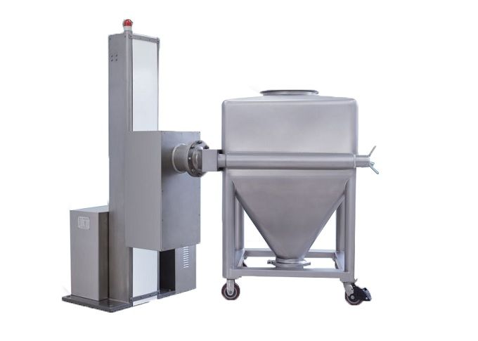 简要说明 该机由立柱、机座、回转叉架、驱动、制动、控制系统等部件组成。将混合料斗推入回转叉架并锁紧螺母,启动控制系统,将料斗提升到混合高度并可靠定位。驱动系统按设定的时间、转速等数据进行自动混合。混合作业结束,回转叉架垂直停止,料斗自动下降到地面,整机停止,并打印工艺数据。松开回转叉架的紧锁螺母,将料斗推出到下一个工序。 主要特征 1,整机结构合理,性能稳定、操作方便。无死角,无外露螺钉 2,回转体(混合料斗)与回转轴线成30°夹角,混合料斗中的物料随回转体翻动外,同时沿斗壁做切向运动,产生 强烈的翻转和高速的切向运动,从而达到最佳的混合效果。 3,采用PLC全自动控制,并设置红外线安全装置及防误操作装置的出料阀碟,确保生产完全。 4,整机无卫生死角,外露材料采用优质奥氏体不锈钢材质,完全符合药品生产的GMP要求。 主要参数