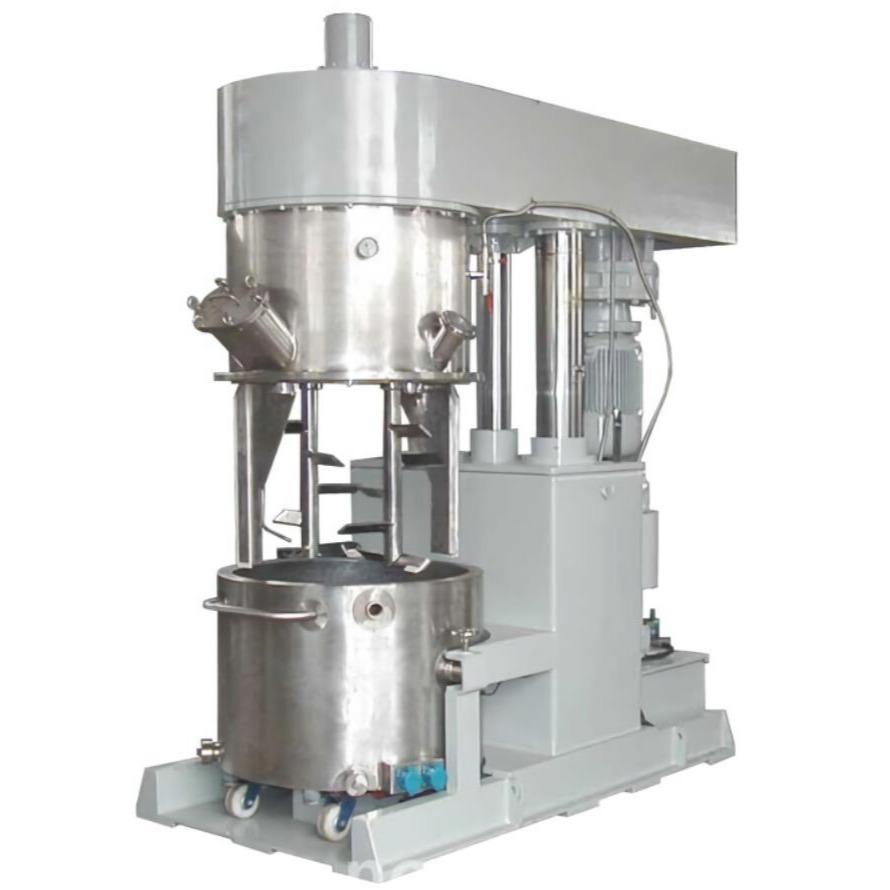 上海鸿善生产的双行星搅拌机是一款适用于高粘度物料的设备,该设备由低速搅拌器和高速分散器组成,具有良好的混合、反应、分散、溶解作用,特别适用于固-液、液-液相的分散、混合;由于其极大的输出扭矩,特别适合粘度较大的产品,比如胶黏剂、硅胶、锂电池浆料等;同时设备带刮壁刮底功能,无死角,无残留。