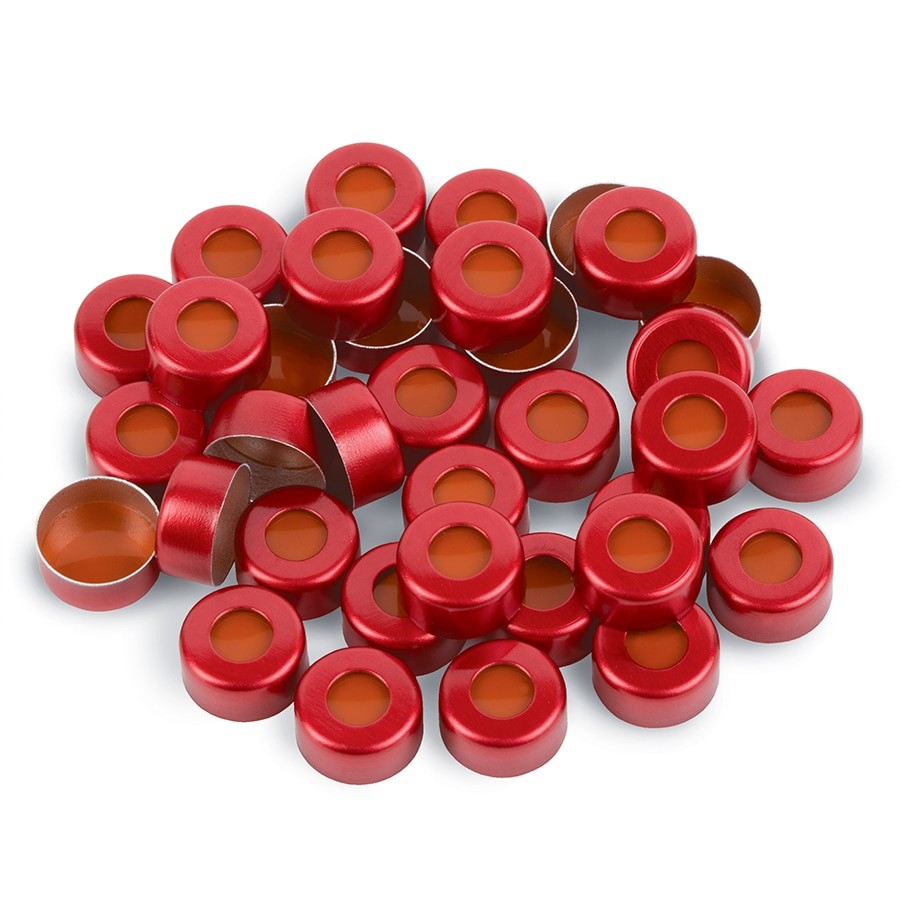 铝制压盖,盖和PTFE/红色橡胶隔垫,红色,2.0 mL,11 mm,1000个/包