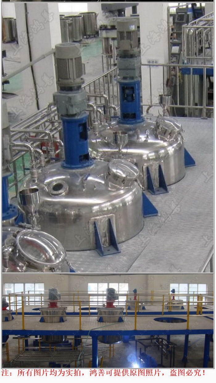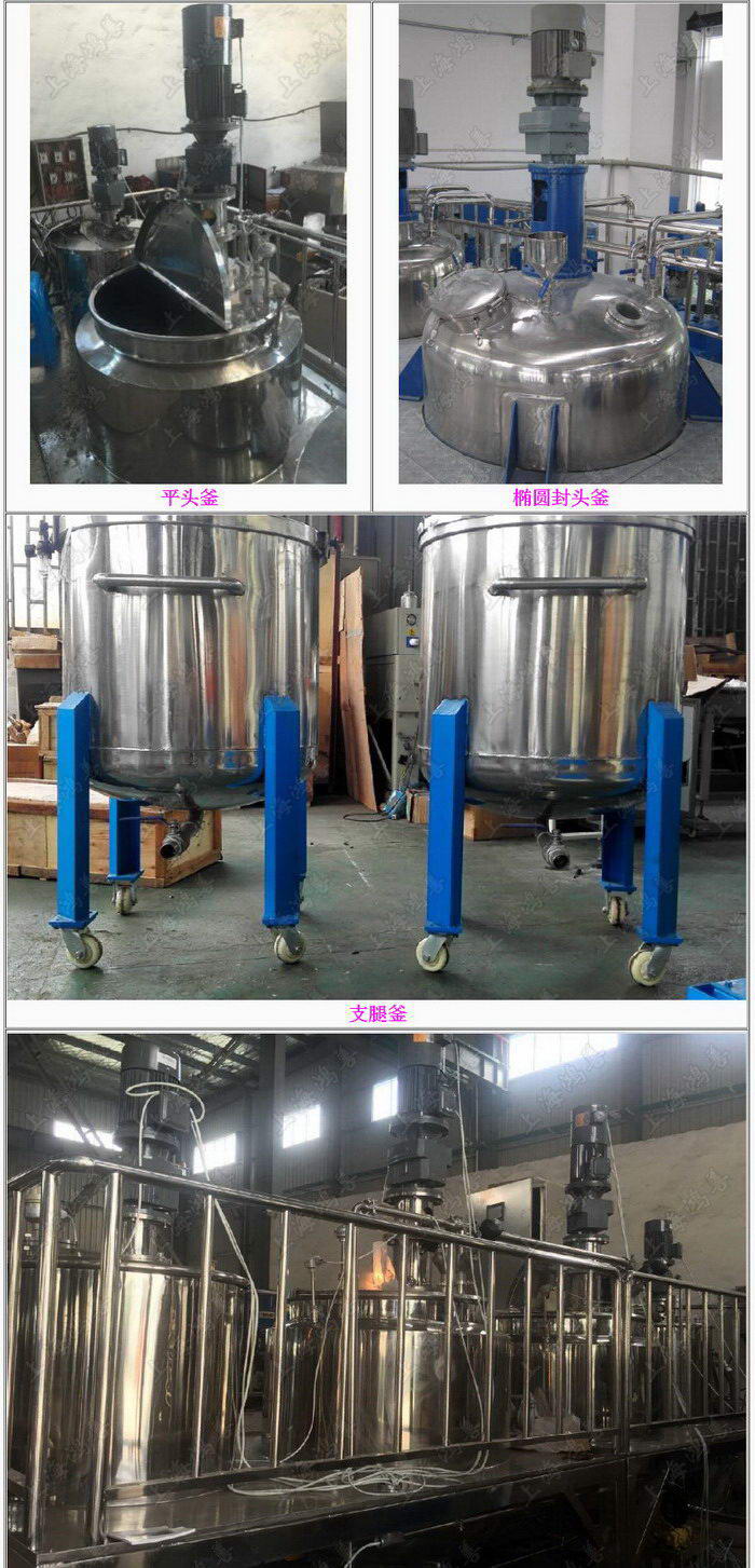 鸿善机电生产的搅拌釜,根据客户需要从实验用到生产用,种类齐全,非标定制,满足各种搅拌反应的工艺要求。设备主要由釜体、上下封头、夹套、搅拌器、传动装置、轴封装置、支承等部件组成。搅拌形式一般有锚式、桨式、涡轮式、推进式或框式等,搅拌装置在高径比较大时,可用多层搅拌桨叶,也可根据生产工艺要求进行选配。 产品的特点: 1.搅拌釜由釜体与搅拌部分组成,釜体由不锈钢做成; 2.带有可用于加热或冷却的夹套,外带保温层; 3.夹套加热方式有电加热、蒸汽加热、导热油加热可供选择; 4.拌部分根据工艺参数可以采用高速的高剪切、高速分散,也可以采用低速的锚式搅拌、桨叶式搅拌、推进式搅拌等; 5.通常是采用落地式支腿安装,也可以采用耳式支座安装在平台上