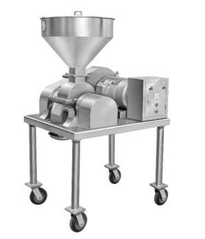 主要用途 本机采用混合喷粉法原理设计研制而成,适用于制药、食品、化工等行业,用途极为广泛。 特 点 整机结构简单,粉碎室装拆与清洗方便,粉碎室凡与物料先接触的部分,全部采用不锈钢材料制造,能耐酸、耐蚀,使被粉碎物料更能符合卫生要求。本机运转平稳、移动方便、噪音低、粉碎效果好,电耗低等优点。 工作原理 本机属高速运转机械,采用一面快口刀刃,另一面为冲击式刀片,使被粉碎物经高速刀片剪切获得粉碎。该机还可根据不同物料选用形状及尺寸不同的刀片,粒度大小通过更换网布或调正速度获得。 技术参数
