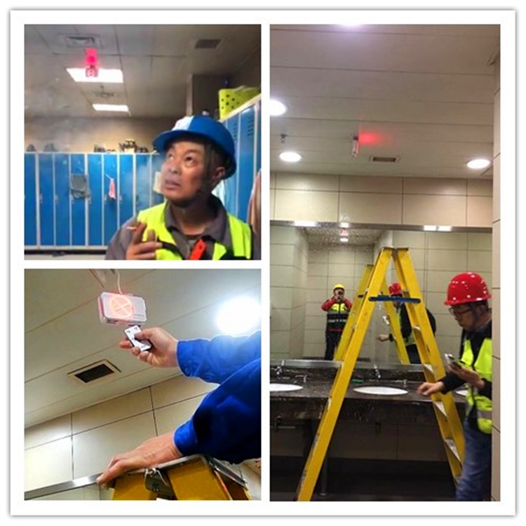 安装方式: 专用不锈钢挂板吊顶式安装 提醒方式:智能合成语音警报(可自由定制播报内容)、立体禁烟标志闪烁、外置声光报警器、接入外部其他控制主机设备显示