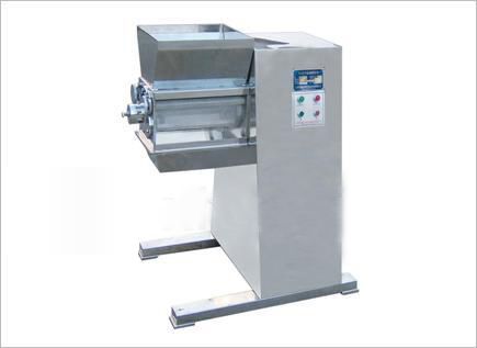 通过机械传动使滚筒往复摆动,将物料从筛网中挤出制成颗粒或粉碎制粒。