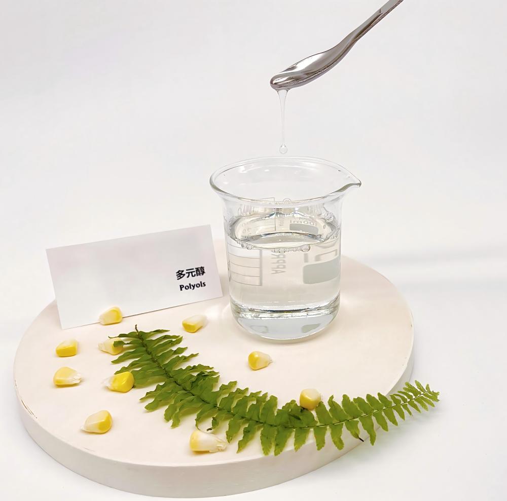 多元醇产品定义Productdefinition 分子中含有二个或二个以上羟基的一大类醇类,叫做多元醇。按原料的来源不同,可分为植物基多元醇和石化基多元醇。植物基多元醇作为一种新兴绿色材料,随着应用技术的不断成熟,其应用领域扩及到了大部分的聚氨酯类产品。 产品功能和应用ProductFunctionalCategoryandApplications 多元醇是制备聚氨酯胶粘剂的主要原料,因其分子结构的不同其性能也各不相同。 1.采用结构规整的多元醇所合成的聚氨酯胶粘剂具有较强的结晶性和较高的粘接强度; 2.带有侧链甲基的多元醇所制备的聚氨酯胶粘剂具有较好的光泽度和亮度; 3.用聚醚型多元醇所制备的聚氨酯胶粘剂具有较低的玻璃化温度、较好的柔韧性和耐水性能等。 产品概述ProductSummary 通用名称NonproprietaryNames中国:多元醇 化学名称ChemicalName:Polyol 同义词Synonyms:Hydrogenatedstarchhydrolysatespolysaccharidealcohol,Hydrogenatedglucosesyrup;HydrogenatedStarchSyrup 产品技术规格和MSDSSpecificationandMSDS