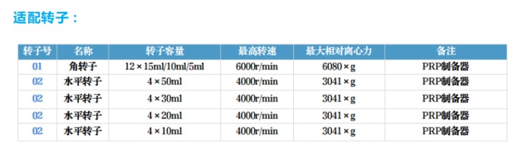应用领域: 广泛应用骨科、疼痛科、康复科、外科、牙科、医疗美容等领域,专用于PRP/CGF/APRF/IPRF制备离心。PRP/ACT富含多种生长因子,可以加速软组织及骨组织的愈合、减轻术后反应、抗感染;亦可唤醒肌肤细胞再生能力,修复受损肌肤,并起到抗衰返嫩的效果。 仪器特点: 1、钢制机身,大力矩无刷电机驱动:无碳粉污染,噪音低、震动小、转速控制精度高。 2、高清触控彩屏显示:转速,离心力,运行时间,转子号,升降速率,运行曲线等;中英文可切换,可带手套直接操作。 3、内置100组离心程序,10段梯度离心,均可自定义,可满足PRP、CGF、APRF、IPRF等项目的制备离心。4、可存储≥1000条运行记录,方便查看追踪;且USB可导出运行记录,高效管理数据; 5、适用于50ml/30ml/20ml/10ml等容量PRP制备,转子部分可以高温灭菌消毒。 6、高效环保制冷压缩机:智能化预冷,制冷速度快,温控精度高。低温环境大大提高了PRP/ACT生长因子的浓度、活性及脂肪存活率。 7、多级阻尼减震设计:震动小,离心效果佳。 8、具有门盖、误操作等诊断功能,机器可直接显示故障信息,便于判断和维修,确保人机安全。 技术参数: 1、最高转速:6000r/min 2、最大离心力:6080×g 3、最大容量:4×1000ml 4、转速精度:±20r/min 5、定时范围:0-99min59s 6、温度设置范围:-20℃-+40℃ 7、温控精度:±1℃ 8、整机噪音:≤58dB(A) 9、电源:Ac220V 50Hz 15A/2200W 10、净重:1100KG 11、外形尺寸:680×630×830mm(L×W×H)