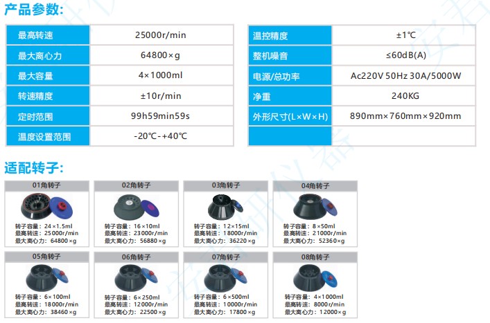 应用领域: 广泛应用于制药厂、生物化学,生物制品等生产、科研单位使用,可最大批量进行蛋白沉淀,细胞分离收集等实验。 产品特性: 钢制机身,大力矩交流变频电机驱动,具有噪音低、震动小、安全可靠等优点。可程式大屏幕触摸控制和按键双控系统,带密码功能,可显示:转速,离心力,运行时间,故障显示,运行曲线等;中英文可切换。采用先进的CPU控制系统,100组10段梯度离心,均可自定义,满足用户不同实验需求。配备RS485通讯接口,可USB导出≥1000条运行记录,方便查看追踪,高效管理数据。智能节能功能,待机自动进入低功耗状态,节能降耗。转子自动锁紧功能,无需人为拧紧转头,转子自动识别系统,防止上错转子运行,有效保护人员安全及离心机的稳定性。采用进口高效环保制冷系统,带一键预冷功能,制冷速度快,噪音低,温控精度高。配有门盖保护、超速、过流和先进的电子式不平衡探测系统等安全设计,可以对离心机过程实时监控,确保仪器安全运行。