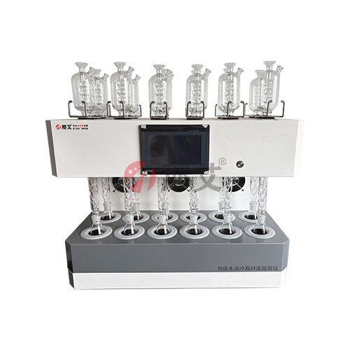 实验室为了加快反应速度很慢或难以进行的化学反应,常常采用回流与冷凝装置,保证反应进行完全,并防止反应物、产物或溶剂挥发逸出体系。那艾智能水浴冷凝回流提取仪(专利编号:CN220496410U)采用智能恒温水浴替代传统水浴锅,标配12个加热单元,满足大样品量的需求;内置四个测温点和耐高温循环水泵来保证水浴温控均匀;一键启动,自动双区控温,且缺水自动补水,可自动排水,避免长时间菌类滋生。适用于食品及食品包装物部分项目的检测前处理,中药科研单位、加工企业、生产企业等样品浸出物、含量测定、理化鉴别等实验。 主要特征 1、仪器机身采用框架一体式设计,稳固牢靠,主体采用品牌冷轧板配合静电粉末涂装,更加耐磨、耐腐蚀; 2、从空开到触点,继电保护器到按钮开关等,选用正泰/德力西或同级别品牌电气,保证仪器品质和的使用寿命; 3、采用工业PLC控制,性能强劲稳定,7寸触控屏操作和显示一触即达,所有功能设置均集成于屏幕中; 4、全自动水位控制,缺水自动补水(蜂鸣报警),可自动排空水槽(内置保护机制40°以下才能启动),避免长时间菌类滋生; 5、高通量12位样品同步操作,水温可达100℃,满足沸水浴回流的温度要求,内置循环泵系统保证水浴温度均匀恒定; 6、冷凝管正后方标配3位大功率风扇,实验结束后对锥形瓶进行快速风冷降温; ☆7、双温区控制,加热温度和时间任意设置,可以同时做两组不同温度的回流实验,回流过程自动完成,结束自动断电停止加热(蜂鸣提醒); ☆8、标配风冷毛刺冷凝管,也可选配水冷球形冷凝管(可外接冷水机,提高冷凝回流效率); ☆9、除单段控温外,提供程序控温模式,带有温度曲线和历史记录功能,实验结束后可倒查; 10、水槽口上配有12个圈套盖板减少蒸汽溢出,不用的加热孔位配有6个不锈钢密封盖板,节能减耗; ☆11、机器顶部配有可折叠的冷凝管支撑架,更方便安全拿取锥形瓶; 12、触控屏内自带说明书和服务中心二维码,手机扫码自动查看电子说明书和一键链接服务中心。 适用标准(仅部分展示) 《中国药典》浸出物的测定法中醇溶性热浸法 脂肪与脂肪油测定法中药浸提回流法 GB 5009.168-2016 食品安全国家标准 食品中淀粉总酸维生素A、D、E脂肪酸的测定 GB 31604.5-2016 食品安全国家标准 食品接触材料及制品 树脂中提取物的测定 GB/T 5009.127-2003 食品包装用聚酯树脂及其成型品中锗的测定 GB/T 8021-2003 石油产品皂化值测定法 GB/T 17817-2010 饲料中维生素 A 检测皂化 GB/T 10345-2022 白酒分析方法(总酯和酸酯总量的测定) 土壤分析技术规范 甲亚胺-H比色法 土壤中硼的测定(提硼回流装置-石英冷凝回流提取仪) 技术参数