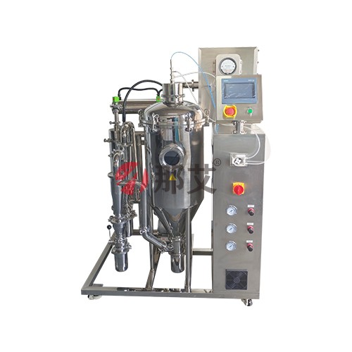 超低温喷雾干燥机(Low Temperature Spray Dryer)是我司专门为热敏性,不耐高温的物料而研制的一款机型,该机型利用空气饱和湿度原理,利用露点差技术,让干透的空气能承载更多水分的方法,实现在常压低温环境下(最低35℃左右)液体物料的干燥成型,保证了物料的原有活性,提升了物料干燥成型效果和收集率,还可以实现放大生产,广泛应用于生物医药,食品饮料,植物提取物,化工材料等等行业。 选型帮助 1、针对热敏性物质,需要在超低温度下(≥35°)进行干燥的物料; 2、适合水溶剂物料,不适合有机溶剂物料;特别适合乳品、蛋白、酶、氨基酸、多肽等物料; 3、相对于真空低温喷雾干燥机,该机型可在常压环境就可以进行,探索成功后,可放大; 主要特征 1、整个实验过程在常压下完成,最低35°干燥温度,解决了热敏性物料喷雾干燥的难题,且工艺成熟可放大; 2、整机采用SUS304制造,设计紧凑,自成一体,机器按键、温度计、空气管路等全部采用人体工程设计,快捷插拔,人性化操作; 3、电气标准制作,从空开到触点,从继电保护器到按钮开关,采用正泰/德力西原装电气标准制作,有保证设备的安全性、稳定性和使用寿命; 4、二流体喷雾的雾化结构,设计紧凑,方便使用;设有喷咀清洁器(通针),在喷咀被堵塞时,会自动清除,通针的频率可自动调整; 5、采用PLC控制,7寸触摸屏可实现进风温度、出风温度、通针频率、数据记录、曲线分析、报警和过载保护等显示和控制; 6、进料量可通过进料蠕动泵调节,样品少量可达50ml,用户可根据物料情况选择**进料方式; 7、喷粉的颗径呈正态分布,流动性非常好,而且干燥后的成品干粉,其颗粒度较均匀,95%以上的干粉在同一颗粒度范围; 8、内置超静音无油空压机,喷粉的颗径呈正态分布,流动性非常好,噪音非常低,小于60db; 9、三级收料设计,塔底收料、旋风收料、布袋收料等,回收率更高,塔底和旋风收集大颗粒,布袋收集细小颗粒; 10、采用折叠滤筒过滤,大大提高除尘过滤面积,可捕集粒径大于1微米的细小粉尘,净化空气效率可达99%以上,改善环境,助力环保。 技术参数