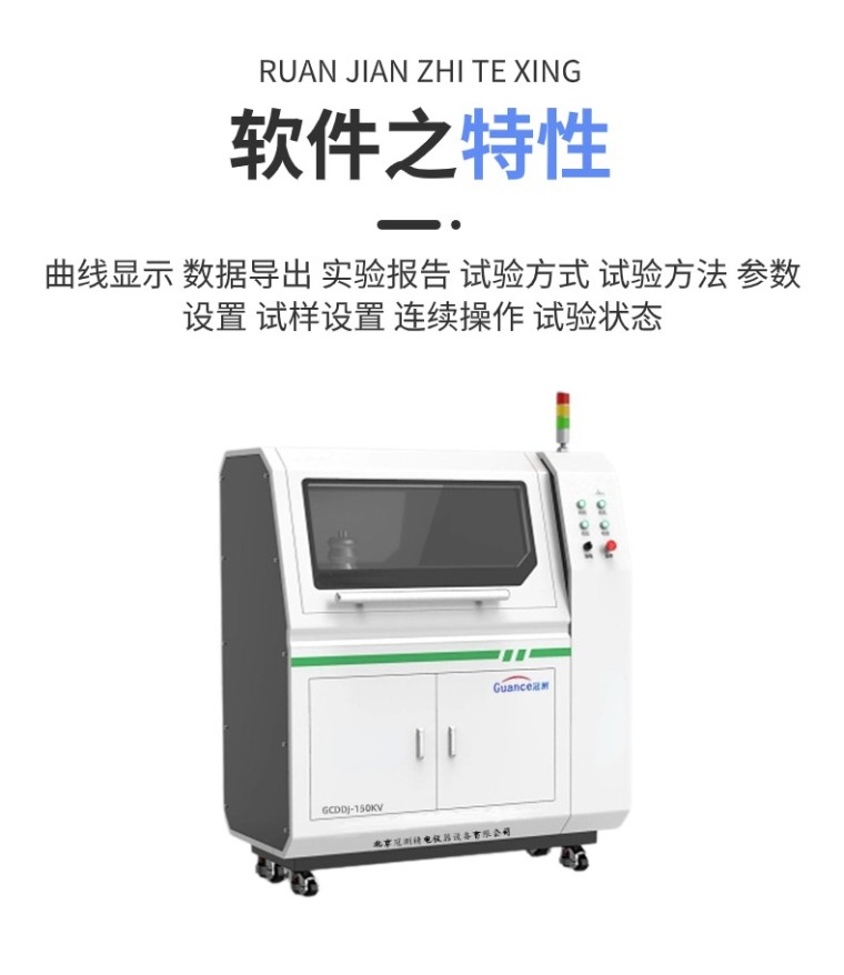 电压击穿试验仪-微机控制 GCDDJ-150Kv 满足标准:GB/T 1408-2006 绝缘材料电气强度试验方法GB/T1695-2005 硫化橡胶工频电压击穿强度和耐电压强度试验 GB/T3333 电缆纸工频电压击穿试验方法 HG/T 3330绝缘漆漆膜击穿强度测定法 GB/T 12656 电容器纸工频电压击穿试验方法 ASTM D149 固体电绝缘材料在工业电源频率下的介电击穿电压和介电强度的试验方法. … … … 一、适用范围及功能 主要适用于固体绝缘材料(如:塑料、橡胶、层压材料、薄膜、树脂、云母、陶瓷、玻璃、绝缘漆等绝缘材料及绝缘件)在工频电压或直流电压下击穿强度和耐电压的测试。 二、系统组成: 控制模组:本仪器由电脑上位机软件控制,是我公司自主研发的全新第三代介电强度检测仪器,本仪器核心控制系统是通过西门子PLC控制,数据采集部分由西门子数字量集成模块完成,和电脑通讯数据采集由光电隔离线完成,有效解决试验过程中的抗干扰问题,电压采集和电流采集由高精度传感器完成。 调压模组:本模组主要应用于调压,可以对升压速率进行调节,有高压归零限位及高压升压限位。主要硬件组成有调压器、电机等部件组成。软件操作使用方便,能够实时显示升压曲线、泄露电流动态曲线,同时升压速率无级可调,可以根据自己的需要进行升压速率调节,使升压速率真正做到匀速、准确,击穿后自动判停,自动记录测试结果,显示试验数据,判断准确,并可保存,分析,打印试验数据。 高压模组:本模组主要是通过高压发生器,使电压从低压按照设定的升压速率进行升压,核心部件主要由变压器及配套的抗干扰配件组成。 试验模组:本部分主要有配套的试验电极、试验油槽、试验支架组成,可根据用户需要,在高温试验环境中进行。 二、软件功能: 01、软件平台:WINDOWS窗口操作平台,界面直观,便于操作 02、曲线显示:在实验过程中可以动态显示试验曲线 03、数据导出:可以对试验结果导入EXCEL表格 04、实验报告:可以人为设置报告名称,并对实验报告进行打印 05、试验方式:可以根据需求对直流试验和交流试验进行灵活选择 06、试验方法:可以根据需求自行选择击穿电压、耐压试验、梯度试验 07、参数设置:可以根据不同的试验方式及试验方法灵活设置所需的不同参数值 08、试样设置:可对不同标准的试样参数灵活设置 09、连续操作:连续操作试验时,可直接在软件里结束试验,进行二次试验 10、试验状态:软件里实时显示当前试验状态,如:试验门是否关闭,升压指示、归零复位指示等 |