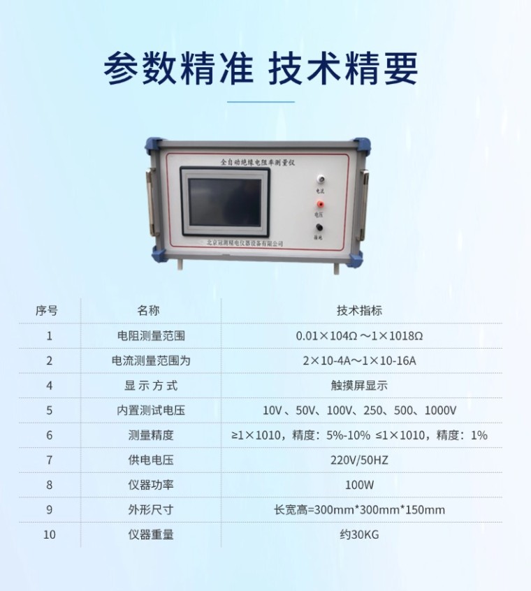 高温绝缘电阻率测试仪 产品概述: 本仪器是一台通用高温绝缘电阻率测试仪器,可以适用于不同试样类型(片材/棒材/块体等)的绝缘材料电阻率测试。同时可以配套不同的试验套装,可以实现对不同高低温、真空及气氛环境下测试,满足客户多种测试需求,方便用户进行后期的拓展和延伸。本测量系统操作使用方便,电阻测量精度高,温度采集准确。 适用客户: 适用于计量院、第三方检测机构、科研院所、生产企业研发、质量品管检测等用户。 本仪器全套试验测控系统主要由以下四部分组成: ★高低温试验台 ★全自动绝缘电阻率测量仪 ★配套专用测试 ★高低温电阻率试验控制系统 一、高低温试验台 高低温试验台是通用试验设备,可以独立加热,也可以根据用户的需求,配备不同的测试工装和夹具,通过和不同的测试主机配套使用,可以用于高低温绝缘电阻率、高低温导体电阻率、高低温介电性能测试。 序号 项目名称 技术参数 备注 1 加热方式 电加热 2 加热功率 2KW 3 降温方式 通过风扇吹自然冷风 4 制冷方式 液氮 5 制冷液氮容积 约1000ml 6 温度范围 -100℃---+1000℃ 温度范围可选 7 测试电极 三电极 8 测量电极尺寸 25mm 可按试样规格定制 9 控温精度 ±0.5℃ 10 试样尺寸 50mm 11 操作显示 7寸触摸屏 12 供电电压 220V/50HZ 12 外形尺寸 14 设备重量 约50KG |