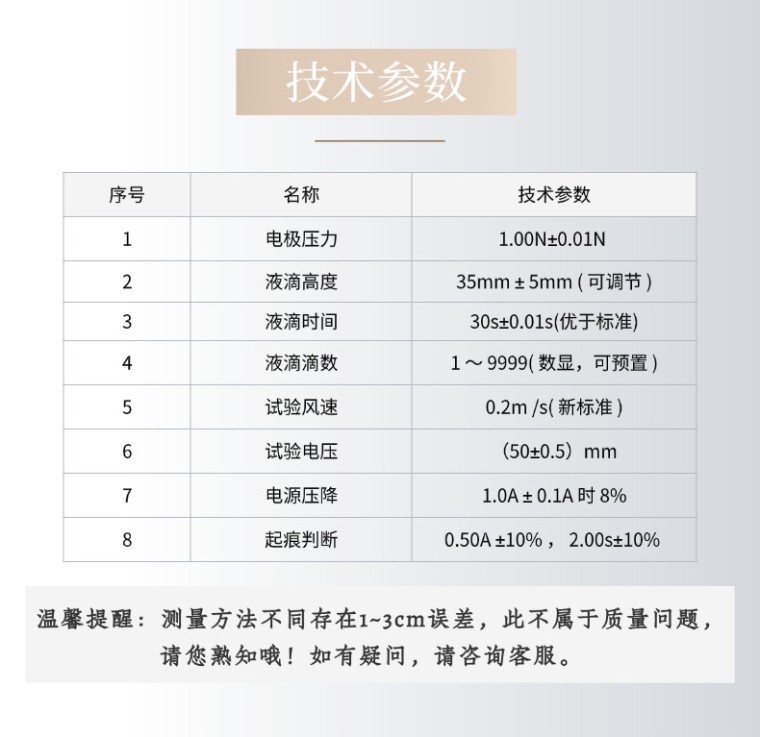 触摸屏-耐电痕化指数测定仪 NLD-BI 一、使用范围测量在电压高达600 V时固体电气绝缘材料在电场作用下表面暴露于含杂质的水时的相对耐电痕化性能。 当将电压施加到放在材料表面上规定 的电极装置之间,且电解液以规定的时间间隔滴到两电极之间时,在此试验情况下可能产生电痕化。引起材料破坏所必需的液滴数随着施加电压的减小而增加,且在低于某一限值时,不发生电痕化。 当材料在高试验电压下也未电痕时,可以有不同程度的腐蚀,且腐蚀深度能测出。某些材料能在试验时燃烧。 二、产品功能特点 1.可编程控制器触摸屏+PLC控制 2.电压、启动排液、切换、电流、停止、排风、照明均在触摸屏上实现,试验数据可存储在触摸屏内 3.电压大小、滴液时间、电流大小、滴液次数、设备门状态、大电流、实验结果实时显示 4.七寸彩色触摸屏 5.顶部配有静音且防回流排风装置,试验结束后可排出燃烧所产生烟气 三、主要技术参数 1.电极材料 :试验电极 - 铂金,电极接杆 - 铜(铂金纯度达到标准要求99%) 2.电极尺寸 :( 2mm ± 0.1mm )×( 5mm ± 0.1mm )×( 40mm ± 5mm ) 3.铂电极 12mm ,30°±2°斜面 4.电极距离:4.0mm ± 0.01mm ,夹角 60°±5° 5.电极压力:1.00N±0.01N 6.试液电阻:A液 0.1%NH4Cl,3.95±0.05Ωm;B液 1.98±0.05Ωm 7.滴液装置:试验时不需要调整,操作简单 8.液滴高度:35mm ± 5mm ( 可调节 ) 9.液滴时间 :30s±0.01s(优于标准)(数显,可预置调节 ) 50滴时间 24.5min±2min 10.液滴滴数 :1 ~ 9999( 数显,可预置 ) 11.试验风速 :0.2m /s( 新标准 ) 12.试验电压 :100V ~ 600V(25V 分度,可调节 ) 13.电源压降 :1.0A ± 0.1A 时 8% 14.起痕判断 :0.50A ±10% , 2.00s±10% 15.施加电压在100~600V(48~60Hz)之间可调,短路电流在1.0±0.0001A(优于标准0.1A)时电压下降不超过10%; 16. 排气孔:Ø100mm 17.空气环境:温度0~40℃ 相对湿度:≤80% 无明显振动及腐蚀性气体的场所 18.当试验回路中,短路电流大于0.5A时间维持2秒钟继电器动作,切断电流,指示试品不合格; 19.试验电源 :220V 0.6kVA 50-60Hz 20.外型尺寸:宽1160mm×深600mm×高1310(含脚)mm 21.燃烧试验区容积:>0.5立方,长*宽*高约900mm×590mm×1050mm, 背景黑色,背景照度≤20Lux |