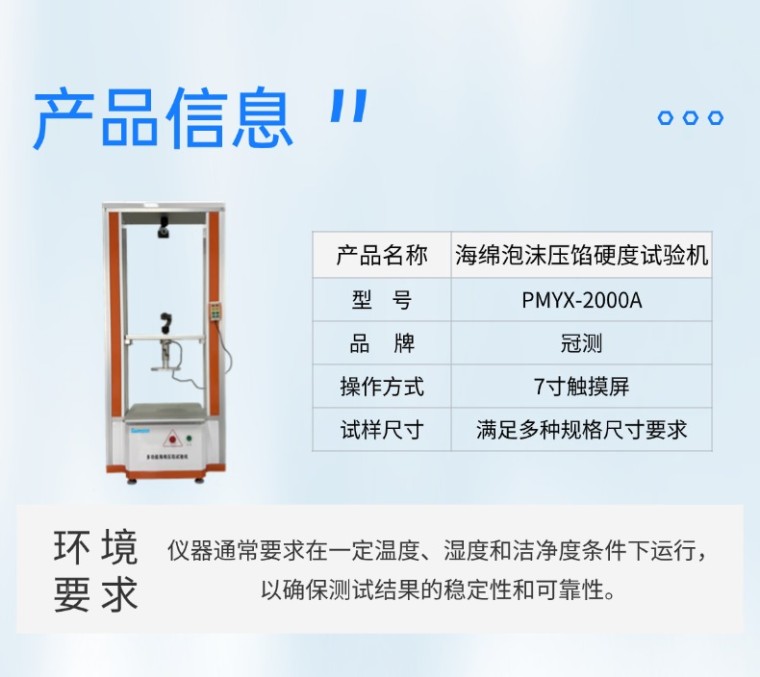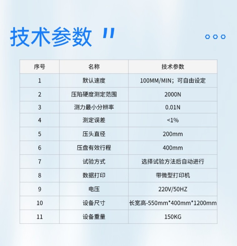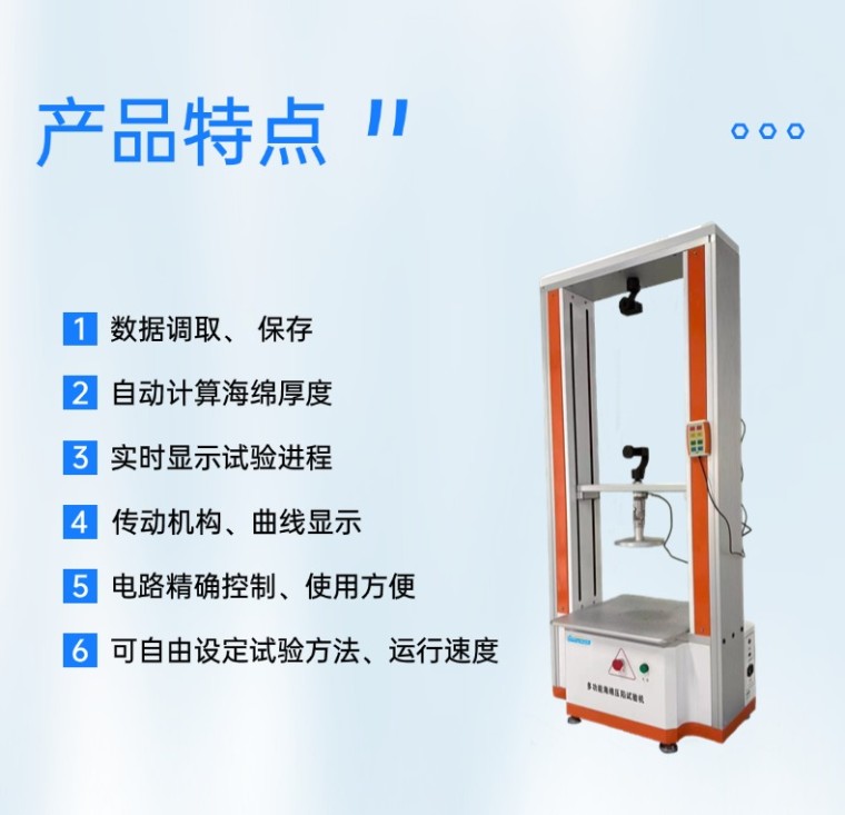 全自动海绵泡沫压陷硬度测定仪 PMYX-2000A 一、符合标准: GB/T 10802软质聚氨醋泡沫塑料 GB/T 10807-2006 软质泡沫聚合材料 硬度的测定(压陷法) GB/T 12825-2003 高聚物多孔弹性材料 凹入度法硬度测定 GB/T 18942.1-2003 高聚物多孔弹性材料 压缩应力应变特性的测定 第1部分 低密度材料 ASTM D3574 软质多孔材料--板、粘合及模制聚氨酯泡沫试验方法 GBT 26392-2011 慢回弹泡沫 复原时间的测定 二、主要适用范围及功能 主要适用于软质泡沫聚和材料如:海绵、泡沫等压陷硬度在国家标准要求的A法、B法、C法及其它试验条件下对标准尺寸的海绵、泡沫等试样进行标准的测试,测定海绵、泡沫等材料的凹入硬度指数、凹入硬度特性、凹入硬度检验以及压缩应力的测试。 三、产品概述: 本设备外观美观大方,主要由试验主机和控制系统两大部分组成,仪器采用计算机控制,能够全程自动按照标准要求测试数据,所有的操作在软件里操作,试验方便,操作简单。可对试验过程中的各种数据进行快速、准确的采集、处理,并可存取、显示、打印. 四、软件操作说明: 预凹入度: 对试样施加5N的力测量试样厚度,以100MM/MIN的速率压入试样厚度70%后,以同样的速率卸载 方法A—凹入硬度指数测定: 进行三次预压后,凹入试样厚度40%并保持30S,记录力值 方法B---凹入硬度特性测定: 进行三次预压后,凹入试样厚度25%并保持30S,记录力值 由凹入试样厚度25%增加凹入度到40%并保持30S,记录力值 由凹入试样厚度40%增加凹入度到65%并保持30S,记录力值 凹入度系数计算: 凹入度25%所需力值/凹入度40%所需力值 凹入度65%所需力值/凹入度40%所需力值 方法C---凹入硬度检验测定: 进行三次预凹入度试验后,测量压入试样厚度的40%后的瞬时*大值 方法D---自由设定试验方法: 可以根据自己的要求进行试验,此试验方法是依据国外标准进行设置,比如要求做如下试验:需要压缩5次 1、**次以150mm/min 速度压缩至原始厚度的30%, 返回初始状态。 2、停顿5秒后,以90mm/min 速度压缩至原始厚度40%, 返回初始状态。 3、停顿3秒后,以300mm/min 速度压缩至原始厚度75%, 返回初始状态。 4、停顿1秒后,以75mm/min 速度压缩至原始厚度50%, 返回初始状态。 5、停顿2秒后,以50mm/min 速度压缩至原始厚度40%, 返回初始状态。 五、产品特点: 1、 压陷量预先设定,通过计时电路**控制压陷量; 2、 使用方便:采用高精度压力传感器和大规模集成电路; 3、 测试方法:除了国家标准规定的测试方法外,还可以自由设定试验方法; 4、 压盘速度:默认速度为100MM/MIN;可以根据需要自由设定运行速度; 5、 传动机构:精密滚珠丝杠,测量无噪音; 6、 厚度测量:能够自动计算显示所测试海绵厚度; 7、 曲线显示:可以同步显示和调取试验时间、压力和压入深度的曲线; 8、 数据调取:把鼠标放在曲线上的任意一点,都可以实时显示时间、压力和压入深度; 9、 数据保存:可以对每次做的实验进行数据保存,同时也可以对设定好的试验方法进行保存; 10、试验进程:实时显示试验进程; 六、技术参数 01 默认速度 100MM/MIN;可自由设定 02 压陷硬度测定范围 2000 N 03 测力*小分辨率 0.01N 04 测定误差 <1% 05 压头直径 200mm 可定制 06 压盘有效行程 400mm 07 操作方式 7寸触摸屏 08 试验方法 A法/B法/C法/D法/预压 ASTM D3574 09 试验方式 选择试验方法后自动进行 10 数据打印 带微型打印机 11 电压 220V/50HZ 12 设备尺寸 长宽高-550mm*400mm*1200mm 13设备重量150KG |