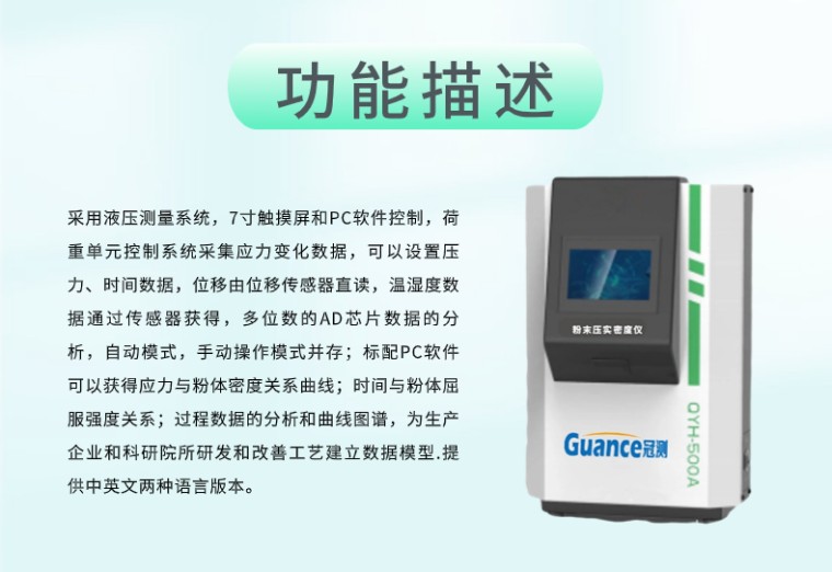 FTYS -10KN粉末自动压实密度仪 测试标准: GBT 24533-2009 锂离子电池石墨类负极材料-粉末压实密度的测试方法 设备用途: 本仪器适用于用粉末压实密度仪测试试样的压实密度 在外力的压缩过程中,随着粉末的移动和变形,较大的孔隙被填充,颗粒间接触面积增大,使原子间产生吸引力且颗粒间的机械契合作用增强,从而形成具有一定密度和强度的压坯。 压实密度的计算公式:压实密度=面密度/材料的厚度 在锂离子电池设计过程中,压实密度=面密度/(极片碾压后的厚度—集流体厚度) ,单位:g/cm3 压实密度分为:负极压实密度Anode density(或称为阳极压实密度)和正极压实密度Cathode density(或称为阴极压实密度)。 工作原理: 锂离子动力电池在制作过程中,压实密度对电池性能有较大的影响,压实密度与片比容量,效率,内阻,以及电池循环性能有密切的关系。 压实密度越大,电池的容量就能做的越高,所以压实密度也被看做材料能量密度的参考指标 功能描述: 采用液压测量系统,7寸触摸屏和PC软件控制,荷重单元控制系统采集应力变化数据,可以设置压力、时间数据,位移由位移传感器直读,温湿度数据通过传感器获得,多位数的AD芯片数据的分析,自动模式,手动操作模式并存;标配PC软件可以获得应力与粉体密度关系曲线;时间与粉体屈服强度关系;过程数据的分析和曲线图谱,为生产企业和科研院所研发和改善工艺建立数据模型.提供中英文两种语言版本。 |