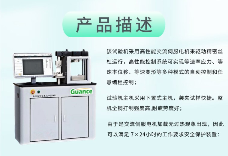 粉末压实密度仪 FTYS-300KN 测试标准: GBT 24533-2009 锂离子电池石墨类负极材料-粉末压实密度的测试方法 设备用途: 本仪器适用于用粉末压实密度仪测试试样的压实密度 产品概述: 在外力的压缩过程中,随着粉末的移动和变形,较大的孔隙被填充,颗粒间接触面积增大, 使原子间产生吸引力且颗粒间的机械契合作用增强,从而形成具有一定密度和强度的压坯。 压实密度的计算公式:压实密度=面密度/材料的厚度 在锂离子电池设计过程中,压实密度=面密度/(极片碾压后的厚度—集流体厚度) ,单 位:g/cm3 压实密度分为:负极压实密度 Anode density(或称为阳极压实密度)和正极压实密度 Cathode density(或称为阴极压实密度)。 工作原理: 锂离子动力电池在制作过程中,压实密度对电池性能有较大的影响,压实密度与片比容量, 效率,内阻,以及电池循环性能有密切的关系。 压实密度越大,电池的容量就能做的越高,所以压实密度也被看做材料能量密度的参考指标 产品描述 u 该试验机采用高性能交流伺服电机来驱动精密丝杠运行,高性能控制系统可实现等速率 应力、等速率位移、等速变形等多种模式的自动控制和任意编程控制; u 试验机主机采用下置式主机,装夹试样快捷。整机全钢打制强度高,耐疲劳度好; u 由于是交流伺服电机加载无过热现象出现,因此可以满足 7×24小时的工作要求**保 护装置: |