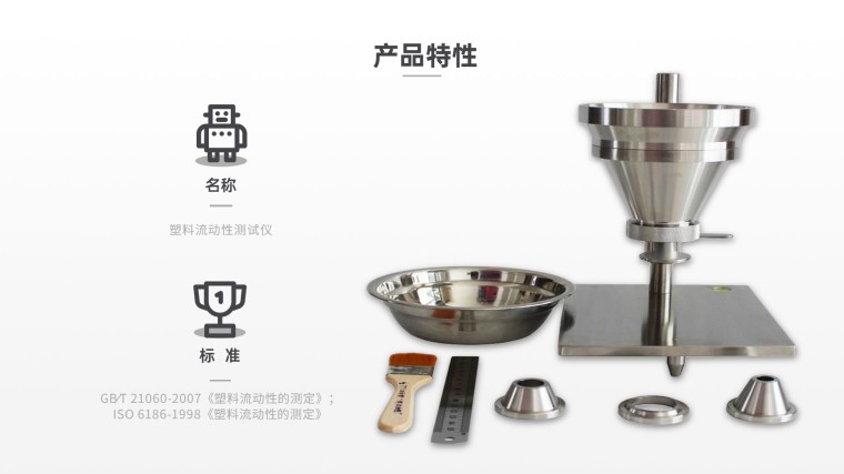 测试方法: 术参数:1.漏斗:直径为110mm±10mm,内部瓶颈的直径为10mm±2mm 2.不锈钢可调节流速漏斗:壁内光滑的金属漏斗,直径为65mm±5mm;内部瓶颈的直径为5.5mm±0.5mm,长度为110mm±20mm。漏斗瓶颈的长度为50mm±5mm,瓶颈底部终止处为正方形. 3.平底容器:内径为72.5mm±0.1mm,内高为72.5mm±0.1mm,漏口的直径是4mm±0.1mm,漏口的壁和根部的厚度为4.5mm±0.1mm,容器的理论容积为300mL,此容器为铝质,内壁光滑,表面平坦. 4.孔塞:孔塞的尺寸能够塞紧平底容器底部漏口 5塑料杯:容积约为400ml |