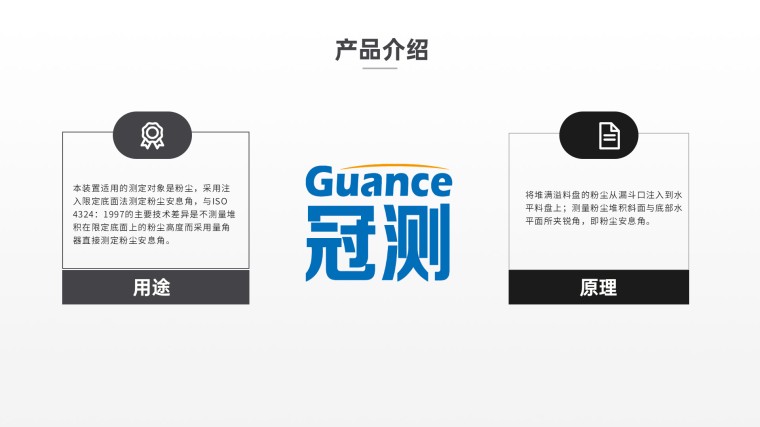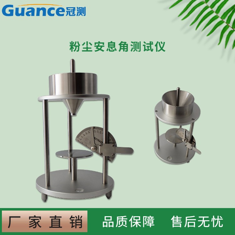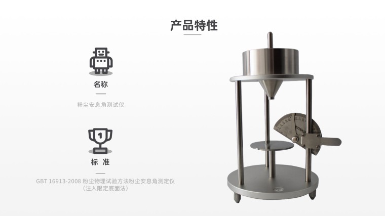 本装置适用的测定对象是粉尘,采用注入限定底面法测定粉尘安息角,与ISO 4324:1997的主要技术差异是不测量堆积在限定底面上的粉尘高度而采用量角器直接测定粉尘安息角。