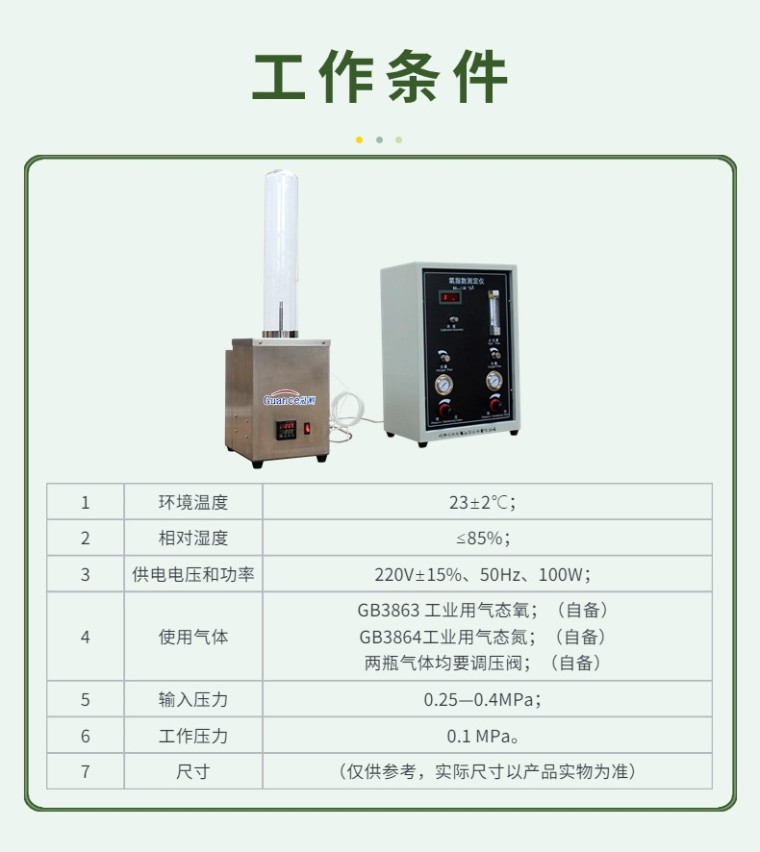 GCYZS-75A数显氧指数测定仪 一、概述 GCYZS-75AYZS-75A型氧指数测定仪,是根据国家GB/T2406规定的技术要求研制的新型号产品。该仪器是用来测定聚合物燃烧过程中所需氧的体积百分比,聚合物氧指数值是在该物质引燃后,保持燃烧50mm长或燃烧时间为180s时所需要的氧、氮混合气流中,刚好维持试样燃烧所需的*低氧浓度(亦称氧指数)。 仪器结构设计合理,操作使用维修方便。测试系统采用进口氧传感器,并用数字显示结果。具有判定准确,重现性好等特点,是科研、生产质量控制的理想测试设备。 二、 主要技术指标 1、测量范围:0—100%、/O2; 2、分辨率:0.1% 、/O2; 3、测量精度:(±0.4)% / O2; 4、响应时间:<10S; 5.、数显精度:0.1%±1个字; 6.、输出漂移:<3% / 年; 7、 配有氧气稳压阀,氮气稳压阀,保证气体的稳定性 8、 配有氧气流量微调阀,氮气流量微调阀。 9、 配有氧气、氮气及混合气体的监控装置 10、 采用进口氧传感器,数字显示 11、 燃烧筒内径:90MM,长度480MM 12、 燃烧筒内气体流速:40MM±10MM/S 13、 燃烧室采用恒温横流装置,保证燃烧室内温度:23度±2度 15、 配有手持式秒表,精度:0.01秒 16、 点火器一套,火焰的长度5mm-50mm,可任意调节。 三、仪器的工作条件 1、环境温度:23±2℃; 2、相对湿度:≤85%; 3、供电电压和功率:220V±15%、50Hz、100W; 4、使用气体:GB3863 工业用气态氧;(自备) GB3864工业用气态氮;(自备) 两瓶气体均要调压阀;(自备) 5、输入压力:0.25—0.4MPa; 6、工作压力:0.1 MPa。 四、其它配置及附件: 1、玻璃管2根 2、玻璃珠1袋(放入燃烧柱内) 3、尼龙管1.2米(连接燃烧柱与主机) 4、密封圈若干 5、试样夹一套 6、金属网2个(放入燃烧柱内) 7、呆扳手1把 8、橡皮管2根 9、M10x1接头螺钉1颗(接燃烧柱内) 10、M10X1接头螺母1颗(接主机) |