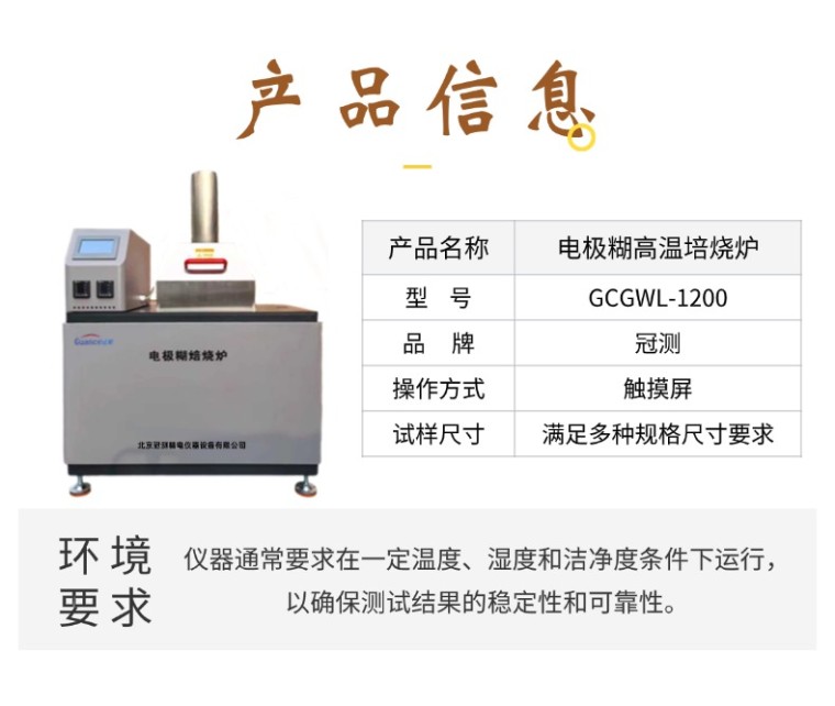 高温焙烧炉 GCGWL-1200 参考标准:YB/T 5054-2015 炭糊类检测试样制备方法 产品用途: 本设备适用于炭糊类检测试样的制备 产品概述: 本高温炉通过触摸屏操作控制,可以实现单程序段和多程序段升温控制,升温速率可设定,可做恒温保持试验。通过两路温度采集,可以实现试样内部温度监控及炉膛温度的保护。炉膛采用耐高温且重量轻的陶瓷纤维材质。 核心技术参数: 1、控制方式:触摸屏+多程序段控制 2、温度采集:两路采集,一路采集试样温度,一路采集炉膛温度 3、热电偶:铂铑热电偶,室温至1600℃,长度750mm 4、升温速率:50℃/h-300℃/h 5、温度范围:室温至1250摄氏度,控温精度±1℃, (1200℃可长期使用) 6、加热方式:高温硅碳棒 7、炉膛尺寸:长360mm宽360mm高450mm 9、外形尺寸:长1200mm宽880mm高1250mm 10、外壳温度:工作状态下外壳*高温度60℃ 11、供电电压:380V 12、设备供电:三相AC380V/功率8KW 13、设备重量:200KG 配套附件: 1.铁坩埚 尺寸:外径210mm,内径200mm,壁厚5mm,高度305mm 数量:1个 2.试样铁桶: 材质:光滑铁皮 尺寸:直径55mm*400mm/直径80mm*400mm,壁厚0.3mm-0.5mm 数量:20个 |