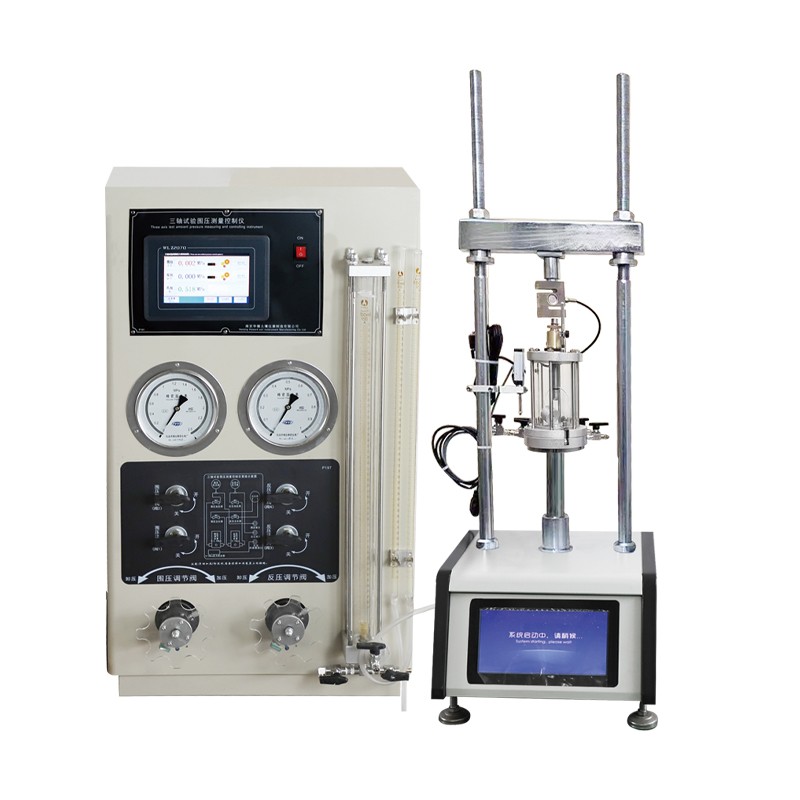 产品信息: TSZ-1B全自动应变式三轴仪用于一般土工实验室及大专院校的教学试验。仪器为应变控制式,用于测量最大周围压力在2.0 MPa, 直径为φ39.1mm 的土试样在轴向静负荷条件下强度和变形特性的三轴剪切试验,可以进行不固结不排水剪(UU)、固 结不排水剪(CU)和固结排水剪(CD)的三轴试验。 产品特点: 1 、 仪器测控系统核心控制系统采用高速 32 位 ARM 微控制器,超高速的采样以及运算能力保证试验过程中各项数据的精准采集及显示。 2 、 测控系统选用大屏幕彩色触摸液晶屏,友好直观的人机交互界面,简单易操作的触控设置,精益求精的软件设计,提供给用户一个超乎想象的使用体验。 3 、 加载系统由伺服电机驱动,剪切速率无级变速。显示选用 10 英寸彩色屏,界面友好直观,全金属机械式按键控制电机,常用速度快速选择并设置,用户自定义速度快速调整。 4 、 整个系统无需外界空气压缩机等任何压力源, 自身实现液压控制,性能稳定,满足各种三轴试验的需求。 5 、 仪器管路简单易操作,阀门管件的开关状态轻松易辨。压力室耐压强度高,加压杆摩擦系数小,最大限度的排除对试验的影响。 主要技术参数 : 1、试样尺寸:中39.1×80(mm) 2、轴向荷载:0-10kN 3、工作台行程:0-90mm 4、剪切速率:0.001-4.000 mm/min 5、周围压力:0-2.000MPa 6、反压力:0-1.000MPa 7、孔隙压力:0-2.000MPa 8、电源:220V±10%,50Hz 9、功率:小于800W 注 :a 剪切速率在全程范围内实现无级调速,高分辨率全彩色液晶 屏实时显示速度及电机状态 b 围压、反压、孔隙压力(以下全文简称为孔压)测量精度可 达到0.001MPa, 且在超大全触摸式屏幕实时显示 c 围压、反压可自动控制,控制精度可调,最高可达0.001MPa |