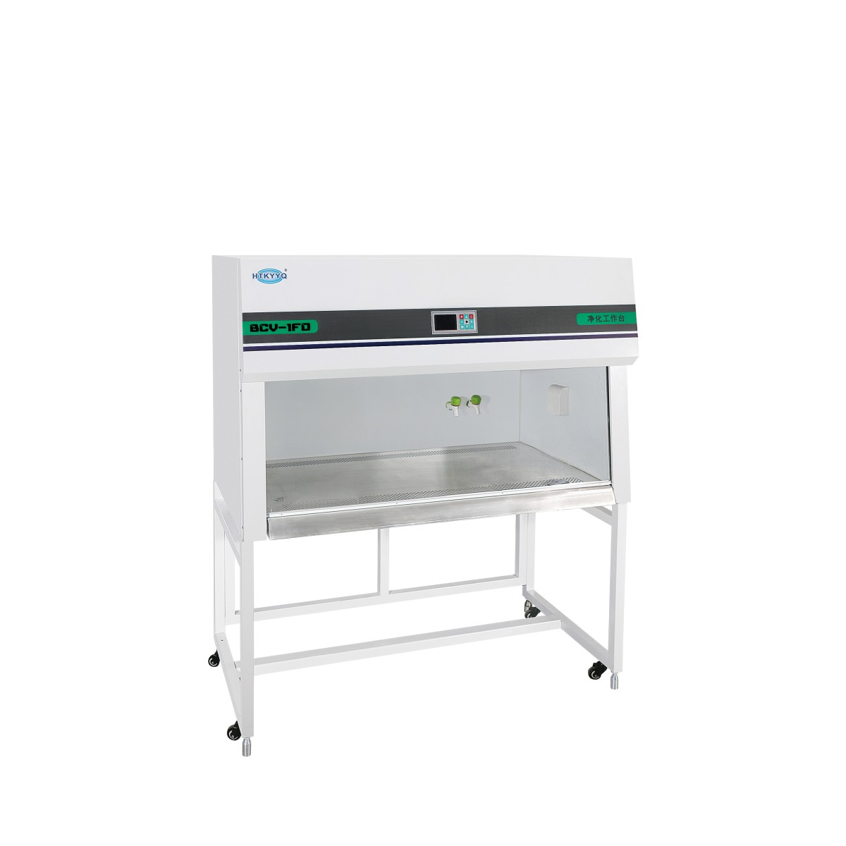 BCV-1FD洁净工作台是一种用于在操作区域提供洁净空气的设备。它通过空气过滤系统,将空气中的微粒和微生物过滤掉,确保操作区域的洁净度。广泛运用于以控制尘埃为主的电子、精密机械工业和以控制尘埃、细菌、为主的农业、林业和医疗卫生事业。 产品特点: 1.采用垂直层流送风结构,3档风速可调,采用小风量大风压低噪音风机。 2.外壳采用优质冷轧板制造,表面静电喷塑,造型美观。防溅洒不锈钢工作台,易于清洁维护。 4.标配液晶智能控制器,具有:紫外杀菌定时功能、杀菌灯与照明灯及风机互锁功能、温度显示功能、累计工作时间功能、多档调节风速、遥控器控制。 5.采用液晶屏显示风速和过滤器使用寿命条(过滤器累计工作时间),操作方便。 6.采用无隔板HEPA高效过滤器,使洁净度可达100级以上。 7.前窗可任意设置开启高度,自平衡上下滑动钢化玻璃前窗,以满足各种操作要求。钢化玻璃带有防紫外线贴膜,可防止紫外线外泄。 8.工作区配置紫外线灭菌灯、防水电源插座和水汽阀,为实验提供方便。 9.分体式结构,符合人体工程学的5度倾角设计,下设万向脚轮,方便移动,亦可固定。 10.隐藏式照明设计,可减轻视觉疲劳。 主要技术参数: 1、高效过滤器观格: 825*604*50m*1个 2、3mm初效过滤棉:1米*1米*3mm厚 3、洁净等级:100级 4、平均风速:0.3m/s~0.6m/s 5、噪音:≤65db 6、振动半峰值:≤5um 7、光照度:≥LX300 8、结构:内室 不锈钢内室 9、外壳 1.2mm厚镀锌板,外部为静电喷涂(白色) 10、LED灯:20W 11、紫外灯:30W 12、插座电流:10A 13、额定功率:420W |