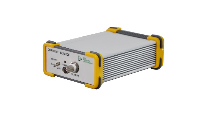 100kHz带宽电压控制电流源 输入与输出浮地隔离设计 输出带宽:1 Hz - 100 kHz 两个输出档位:2 mA/V、200 mA/V 输入电压范围:5 mVrms-0.5 Vrms 最大输出电流:100 mA 精度高,稳定性好 标准机箱,内部结构牢靠美观 开关动作灵活,使用方便 OE4201是一款浮地隔离的压控电流源设备,可为其他仪器设备提供电流源。OE4201输出增益具有2mA/V与200mA/V两个档位,频率为1Hz-100kHz的交流电流。作为一款电流源仪器,OE4201精度高,稳定性好,输出基本上跟负载和外电压变化无关,抗干扰能力强,反应速度快。该仪器适用于与锁相放大器等灵敏交流仪器配套使用,提供了一种从交流电压产生精密电流的简便方法。而且OE4201采用标准机箱,内部结构紧凑、美观、牢靠,开关动作灵活,仪器使用、调整、维修均很方便。 原理框图