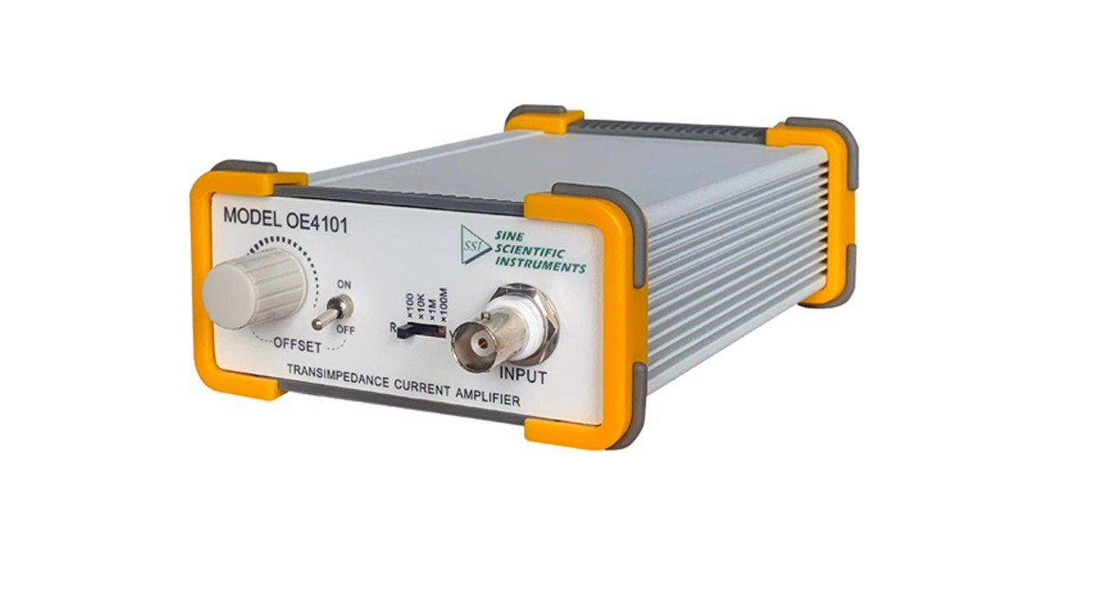 70MHz跨阻型低噪声电流前置放大器 电流噪声:低至60 fA/√Hz 带宽范围:DC - 70 MHz 输入级JFET超低噪声 灵活的跨阻增益设置 大范围高精度偏置调节 简单便捷的开关控制 OE4101是跨阻电流放大器,通过负反馈结构,利用反馈电阻实现输入电流到电压的转换,并且控制放大倍数。 OE4102通过测量输入电流通道上电阻的压降来检测电流,放大并输出与被测电流成正比的电压信号。 OE4101 跨阻低噪声电流前置放大器 60fA/√Hz输入电流噪声 100V/A,10kV/A,1MV/A,100MV/A电流跨阻增益 大范围、高分辨率的偏置调节 原理框图