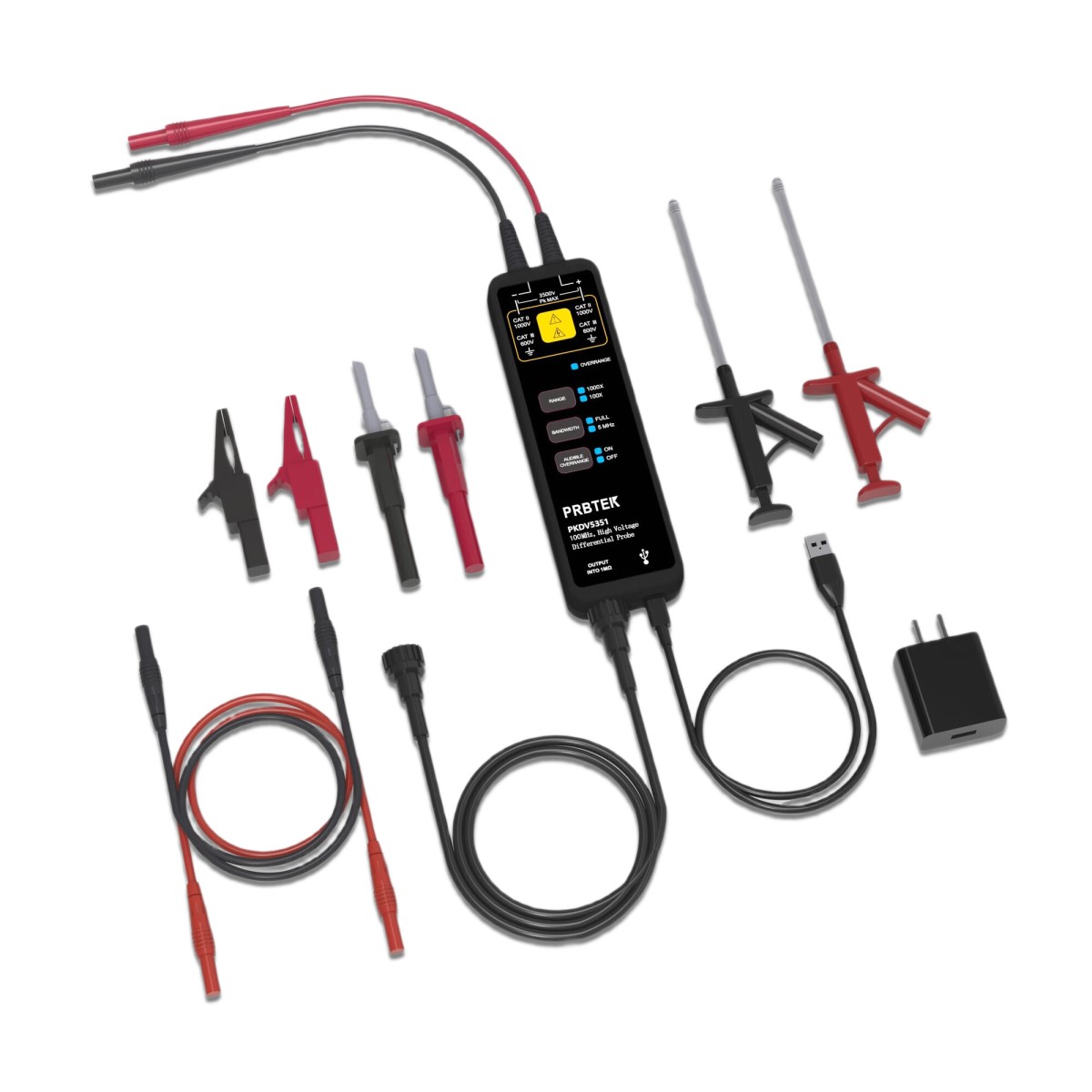 PKDV5001系列高压差分探头是,具备浮地测量特性,最高带宽达 100MHz,满足多数测试系统需求。其量程丰富,可适配大部分测试电路的差动测量电压范围。采用电子轻触式按键,有效延长探头使用寿命;配备 USB 供电接口,使用便捷灵活。探头设有标准 BNC 输出接口,能与任意厂家的示波器匹配。具有一键秒速调零设计,内置过载保护报警,档位可断电保存,精度达 2%,针对不同测试电压提供优化的双量程选择。采用高阻设计,符合多种安规测试标准。此外,具备 5MHz 带宽限制功能,可有效滤除高频噪声与干扰,实现差分电压信号的高速精准测量。广泛应用于开关电源、变频器、变频家电及其他电气功率装置的研发、调试与检修。