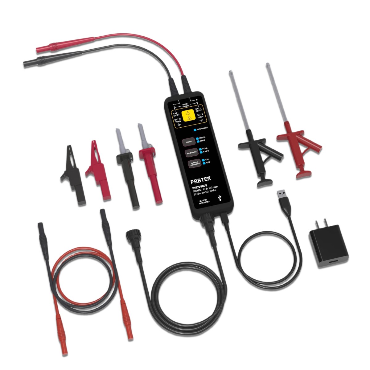 概 述: PKDV5005系列高压差分探头具备浮地测量特性,最高带宽达 500MHz,满足多数测试系统需求。其量 程丰富,可适配大部分测试电路的差分测量电压范围。采用电子轻触式按键,有效延长探头使用寿命;配 备 USB 供电接口,使用便捷灵活。探头设有标准 BNC 输出接口,能与任意厂家的示波器匹配【要求示波器输入阻抗设置为 50Ω(建议**使用示波器内部50Ω),或者接标配的贯通式 50Ω负载,示波器输入阻抗设置成 1MΩ】具有一键秒速调零设计,内置过载保护报警,档位可断电保存,精度达 2%,针对不同测试电压提供优化的双量程选择。采用高阻设计,符合多种安规测试标准。此外,具备 5MHz 带宽限制功能,可有效滤除高频噪声与干扰,实现差分电压信号的高速精准测量。广泛应用于开关电源、变频器、变频家电及其他电气功率装置的研发、调试与检修。 技术指标:
