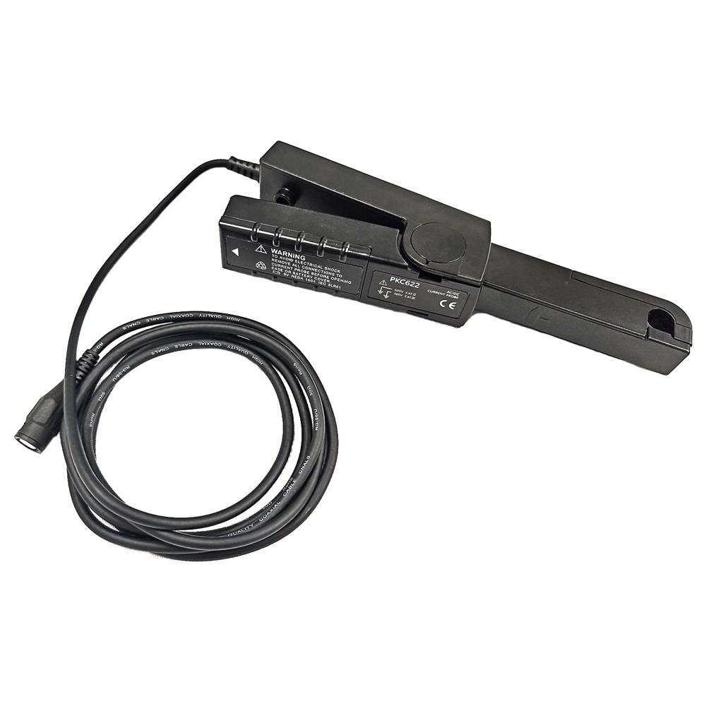 一、概述 PKC622是一款能够同时测量直流和交流的高性价比常用型电流探头。测量电流大小从50mA到100A峰值,带宽达到100KHz(-3dB点)。提供两个量程切换(10A档和100A档位),方便小电流和大电流测量的切换。带有电源指示灯和过载指示灯,且使用电池供电,使得测量更加方便。标准的BNC输出接口,方便和示波器等其它设备的连接。通常用于工频测量、电机驱动器、电源、航空电子设备等场合。