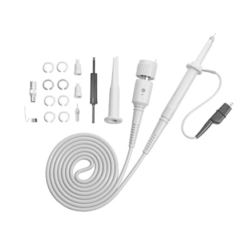 规格参数 无源探头P6501是一款无源高阻抗示波器探头,该探头被设计并校准用于与输入阻抗1MΩ并联13pF的仪器一起使用。而且,该探头可以补偿具有8到20pF输入电容的仪器。P6501可以兼容于自动识别探棒功能的示波器。此时该示波器可以自动检测探头衰减比并调整显示量程。 无源探头P6501主要指标: P6501(500V/500MHz) 一款无源高阻抗示波器探头 带宽 DC~500MHz 上升时间 0.7ns 输入电容 约为11pF 电缆长度 1.2m